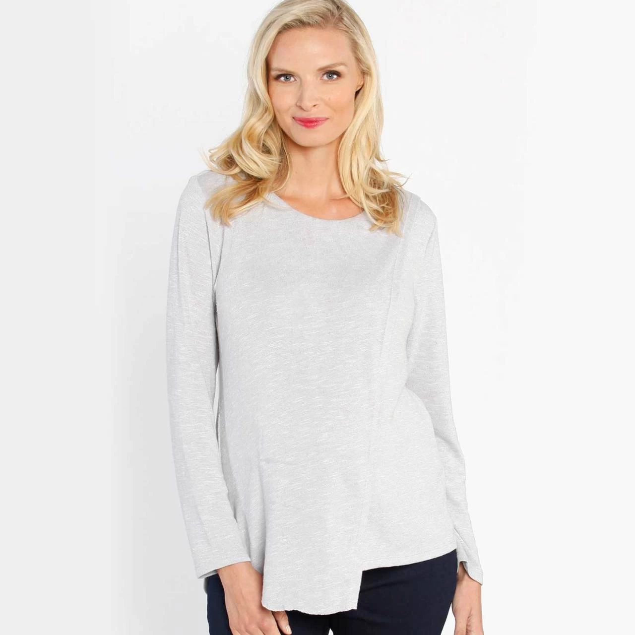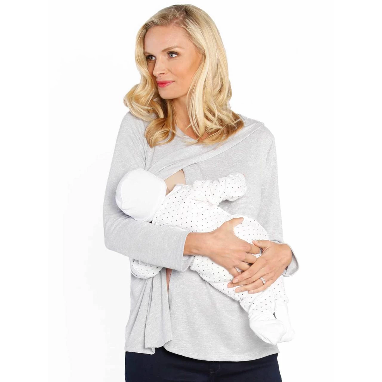 Want maternity wear that does double duty? The grey Angel Maternity Front Layered Nursing Knitted Top Set is both a maternity & a feeding jumper with a white nursing tank underneath. A clever & elegant design with layered petal front for easy and modest breastfeeding access. This soft, lightweight winter knitted top is designed to fit through all stages of pregnancy and beyond. In a soft grey tone, it will effortlessly fit into your existing wardrobe. Once baby has arrived it will make a seamless transition, with its relax fit, into your go-to nursing attire.Â