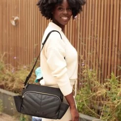 Looking for a compact baby bag that doesn’t look like a baby bag? The Babymel Amber stroller bag perfect for the job. Helping to keep all your parent and baby essentials within easy reach when on quick trips out and about. With three external pockets including one secure zipped pocket large enough for your valuables. This mini nappy bag attaches to your pram with velcro fastenings built-in to the crossbody strap. Inside there is plenty of space for all you an your baby needs, including a themo-insulated sleeve to keep bottles warm or cool and upright.