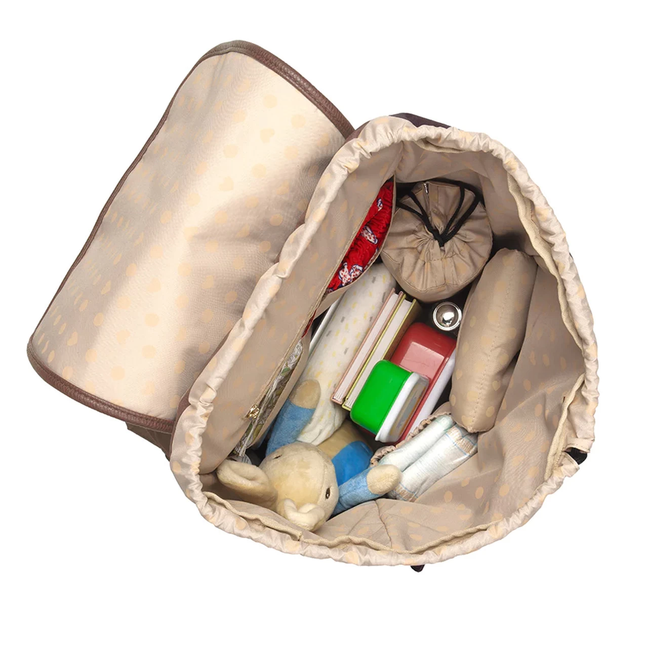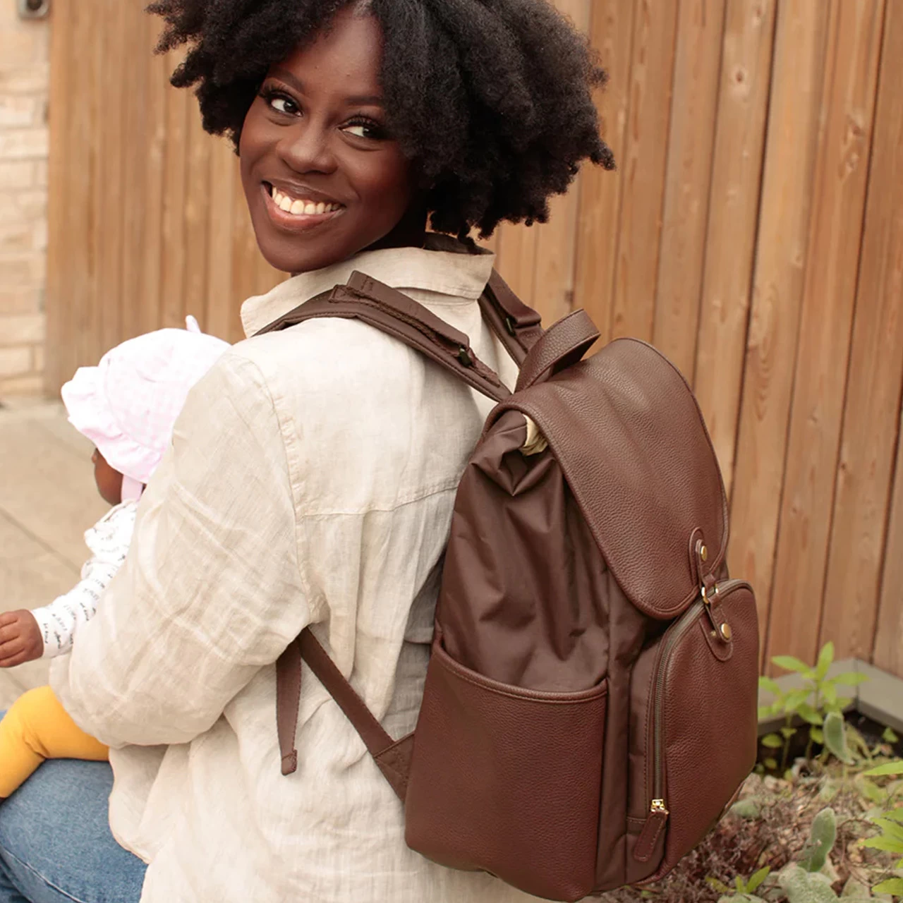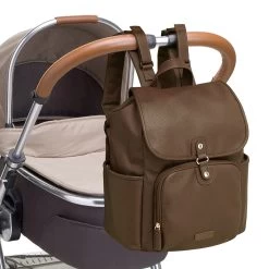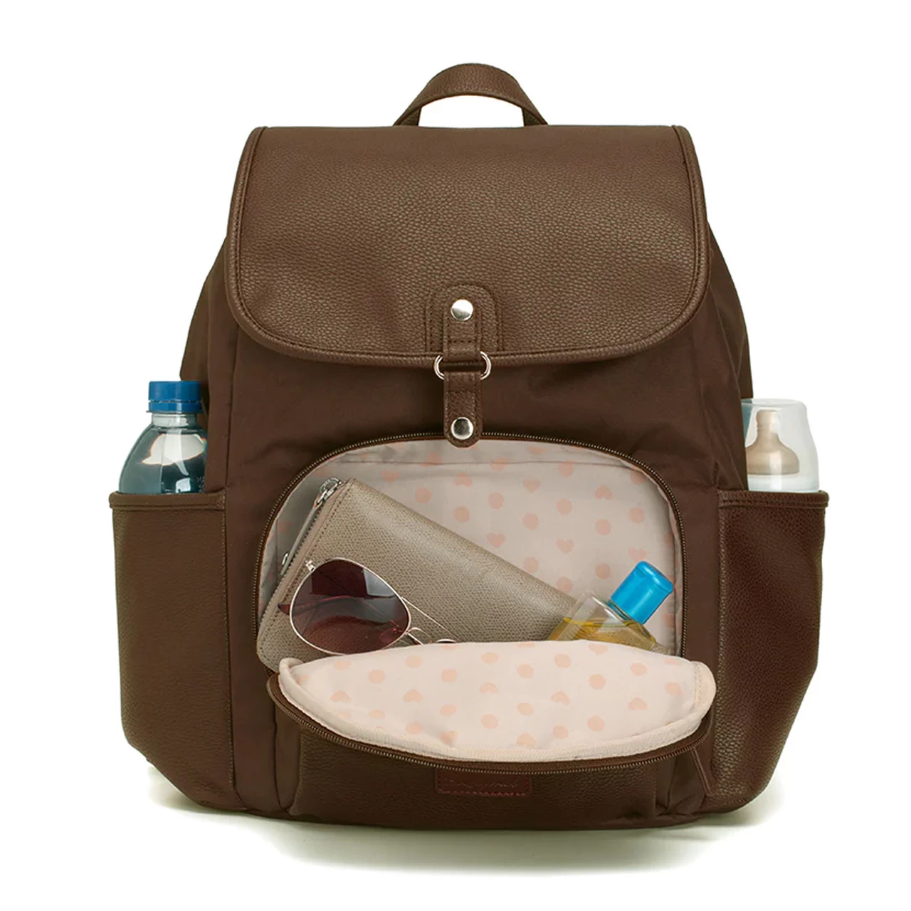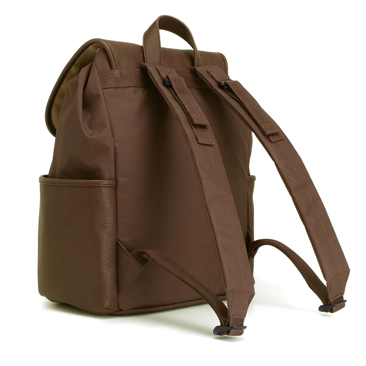 The Freddie is a functional knapsack style nappybag backpack with a stylish look in a rich mahogany tan. Featuring padded back straps, plenty of internal and external pockets and made from durable and water-resistant materials. This baby bag is everything new parents need.
