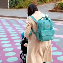 Made from recycled plastic bottles, this convertible baby bag helps our planet as well as with nappy changes! Lightweight and packed full of features you love, the Georgi has a stylish unisex look that is perfect for keeping your hands free. My favourite part of this baby bag is the Easy-Wipes pocket which has a dispenser slot for pulling wipes through, so you can easily grab a wipe without having to undo zips or dig through your bag – perfect for quick clean- ups on the go!