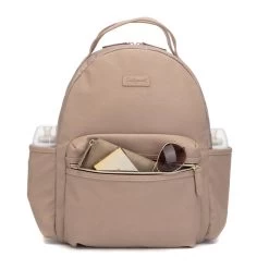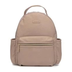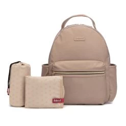 Looking for a stylish yet lightweight nappy backpack? This Babymel Lola Vegan Leather Nappy Backpack is a gorgeous Almond hue, is made from premium vegan leather. This material is water resistant and durable yet lightweight. This impressive baby nappy bag is comfy to wear all day thanks to the cushioned padded back panel and shoulder straps. With plenty of pockets inside and out, the Lola helps keep you organised and looking stylish! Complete with a padded changing mat and bottle holder, you are ready for whatever adventure you have in store with bubs!