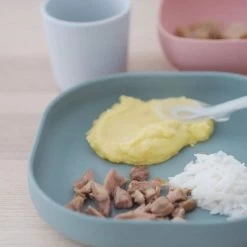 - 4-piece meal set includes: non-slip suction bottom plate, non-slip suction bottom bowl, non-slip cup, 2nd Stage Silicone Spoon