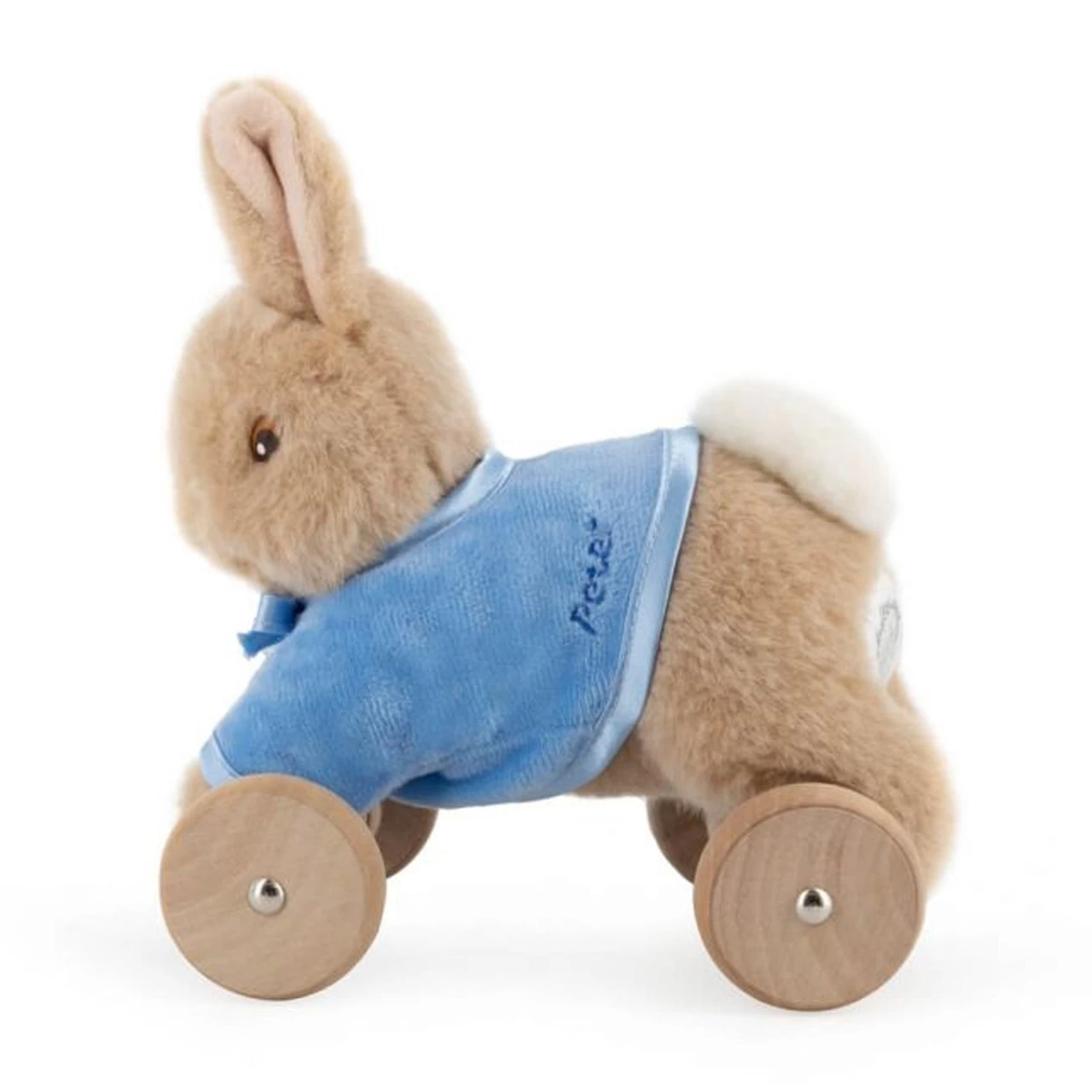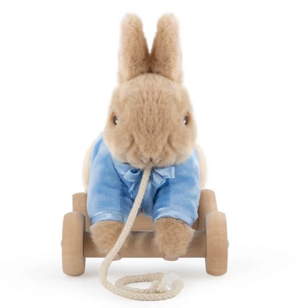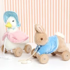 Bringing the magic of story-telling to life. Little ones can take their favourite Beatrix Potter bunny wherever they go! Set on smooth wooden wheels with a sturdy pull cord for hours of fun. Peter Rabbit has soft brown fur, a white fluffy tail and is wearing his signature blue velour jacket and neck tie. His jacket even has his name ‘Peter’ embroidered on it. Ideal gift for a newborn baby, or a stunning decor piece for the home nursery. This charming gift encourages hand-eye coordination, and makes a perfect on-the-go companion.