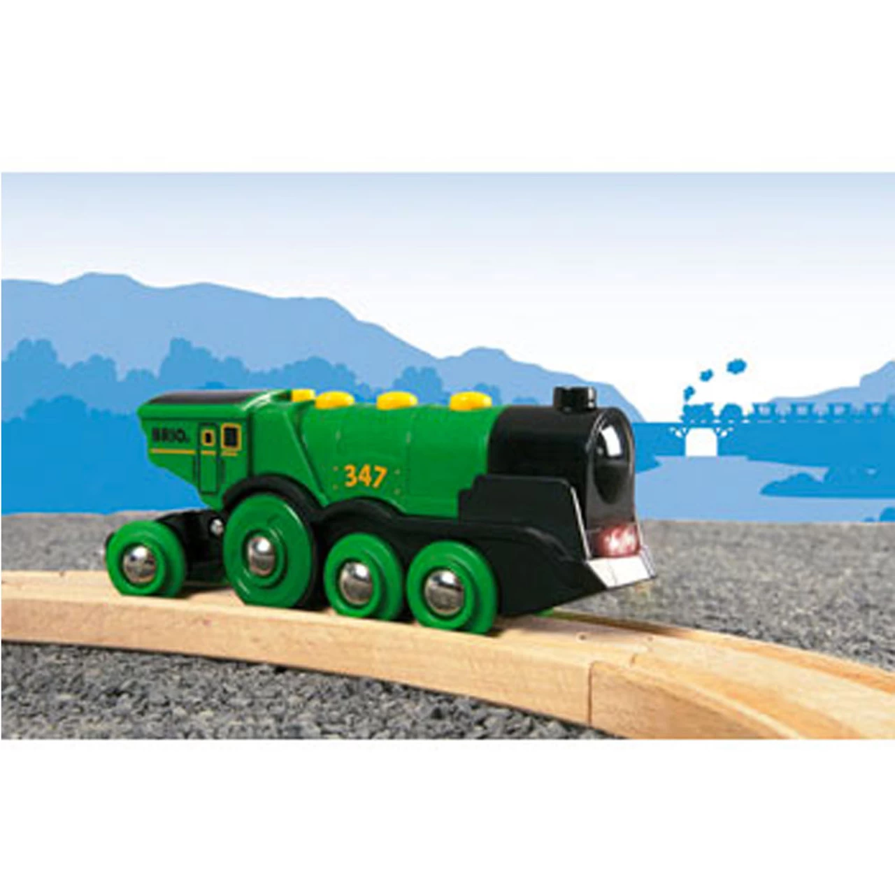 With its two front lights fully lit, full speed ahead and the unmistakable “choo-choo” sound, this BRIO Big Green Action Engine impresses even the most experienced young train driver. The toy locomotive can go full reverse whenever needed, and the switch on top allows free wheel movement without battery function. This is a durable retro design toy that allows your child’s imagination to flow. It also helps improve your child’s spatial awareness and fine motor skills. A lovely addition to any railway track!