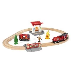 - Includes 1x Station, 1x Fire Engine, 1x Fire Wagon, 1xFire, 2x Firefighters, 2x Trees, 1x Level Crossing, 1x Piece of Road, 2x Rock Supports, 1x Bridge, 1x Lumber Train, 1x Lumber Load, 1x Lumber Wagon, 1x Lumber Holder, 12x Pieces of Track, 1x Ramp