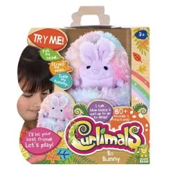 Let cuteness unfold! Curlimals are cuddly interactive plushies that bring lots of joy and laughter. Meet Bo, an adorable little rainbow coloured Bunny who’s always beaming with positivity. When you pat her head she’ll give out the most delightful sounds and phrases – stroke her nose to hear a sneeze or tickle her tummy for some giggles! As playtime draws to a close, Bo curls up into snuggly ball before drifting off into dreamland with some soft snoring.