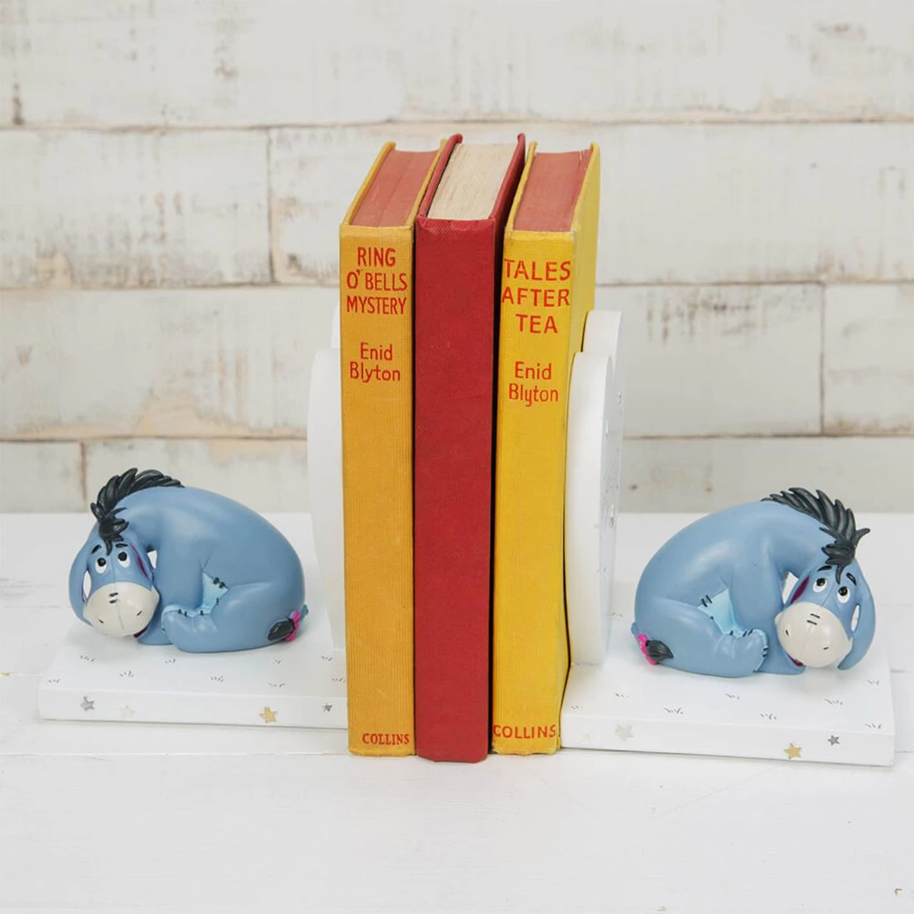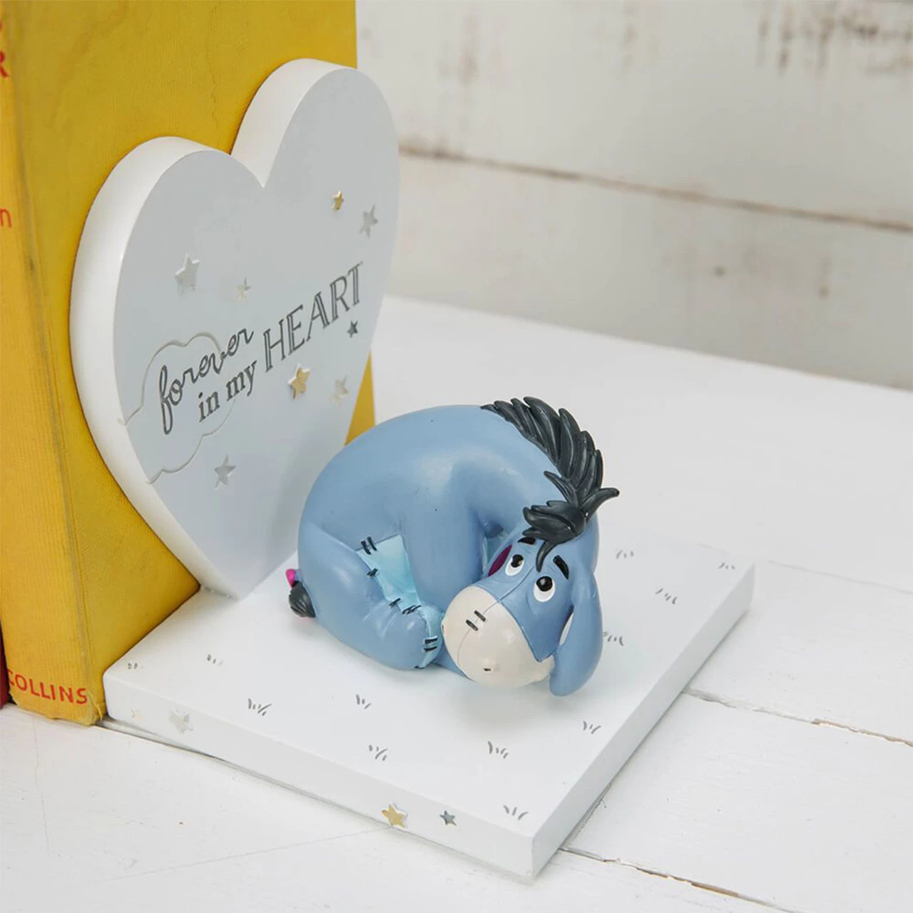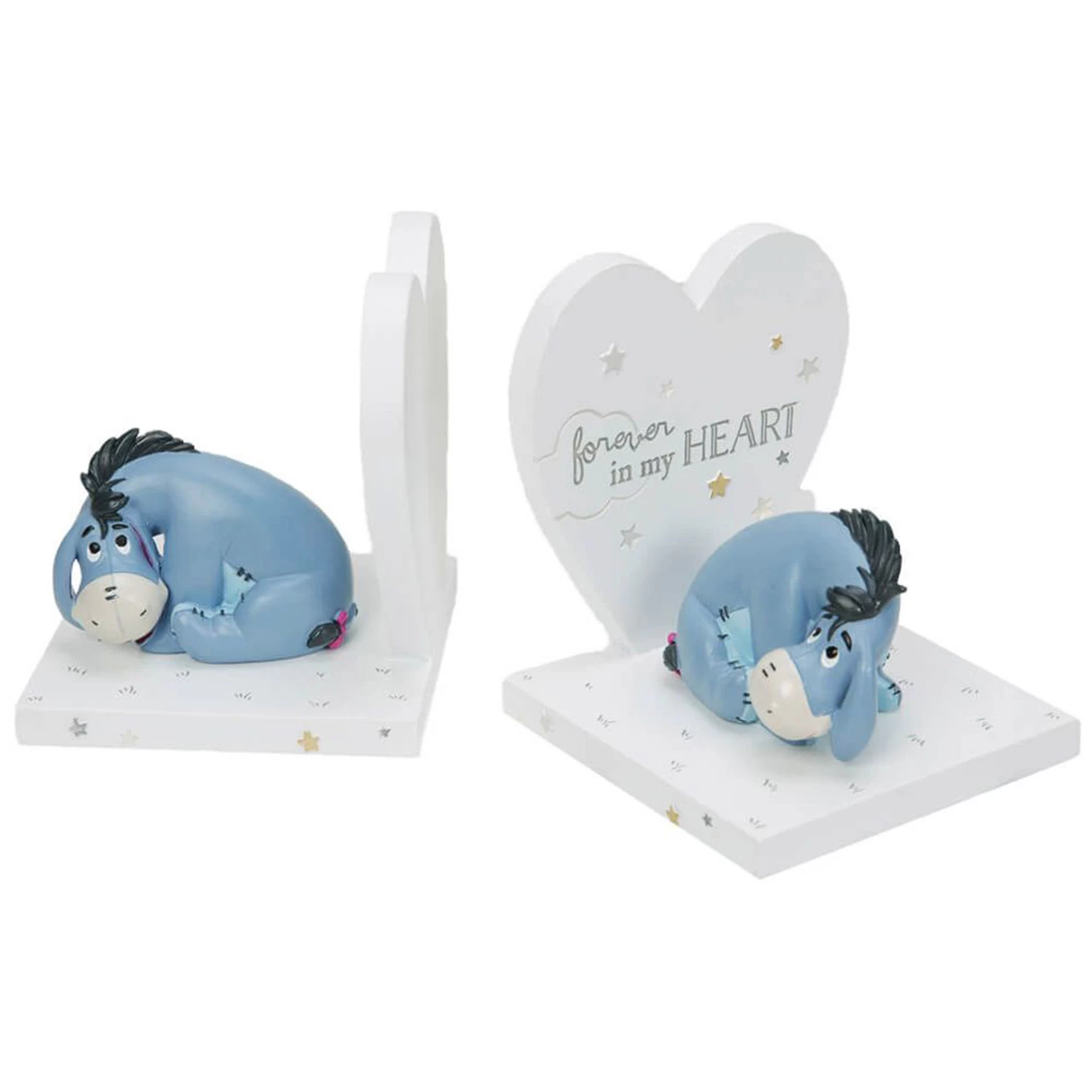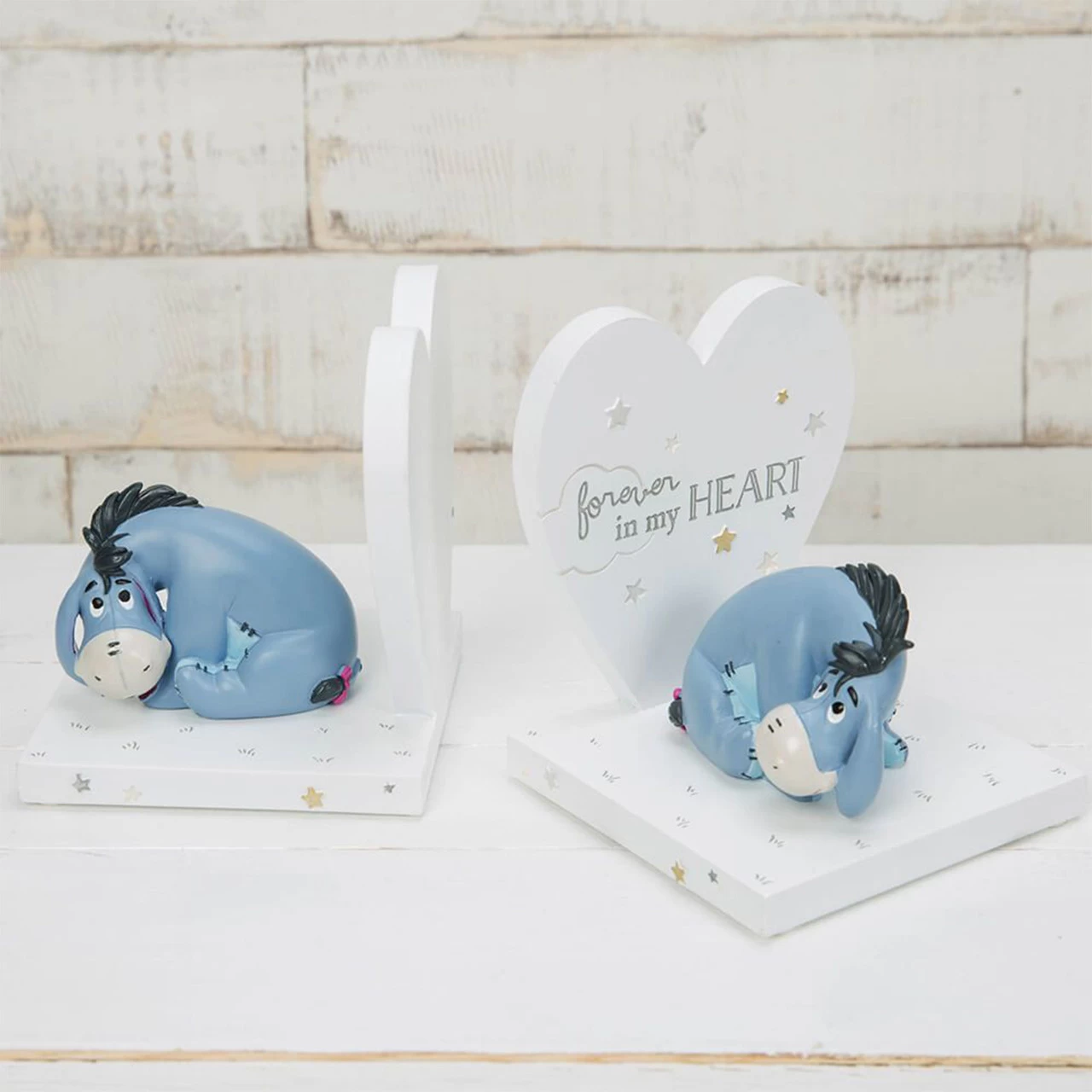 Transform any room with classic Disney Winnie the Pooh magic! These adorable Eeyore bookends are beautifully crafted from handmade clay molds and feature the beloved Eeyore sitting in front of a heart-shaped “Forever in my Heart” bracket complete with charming star and grass designs. Keep your little one’s storytime books tidy and organized with this delightful addition to your nursery decor. Start your Disney adventure today!