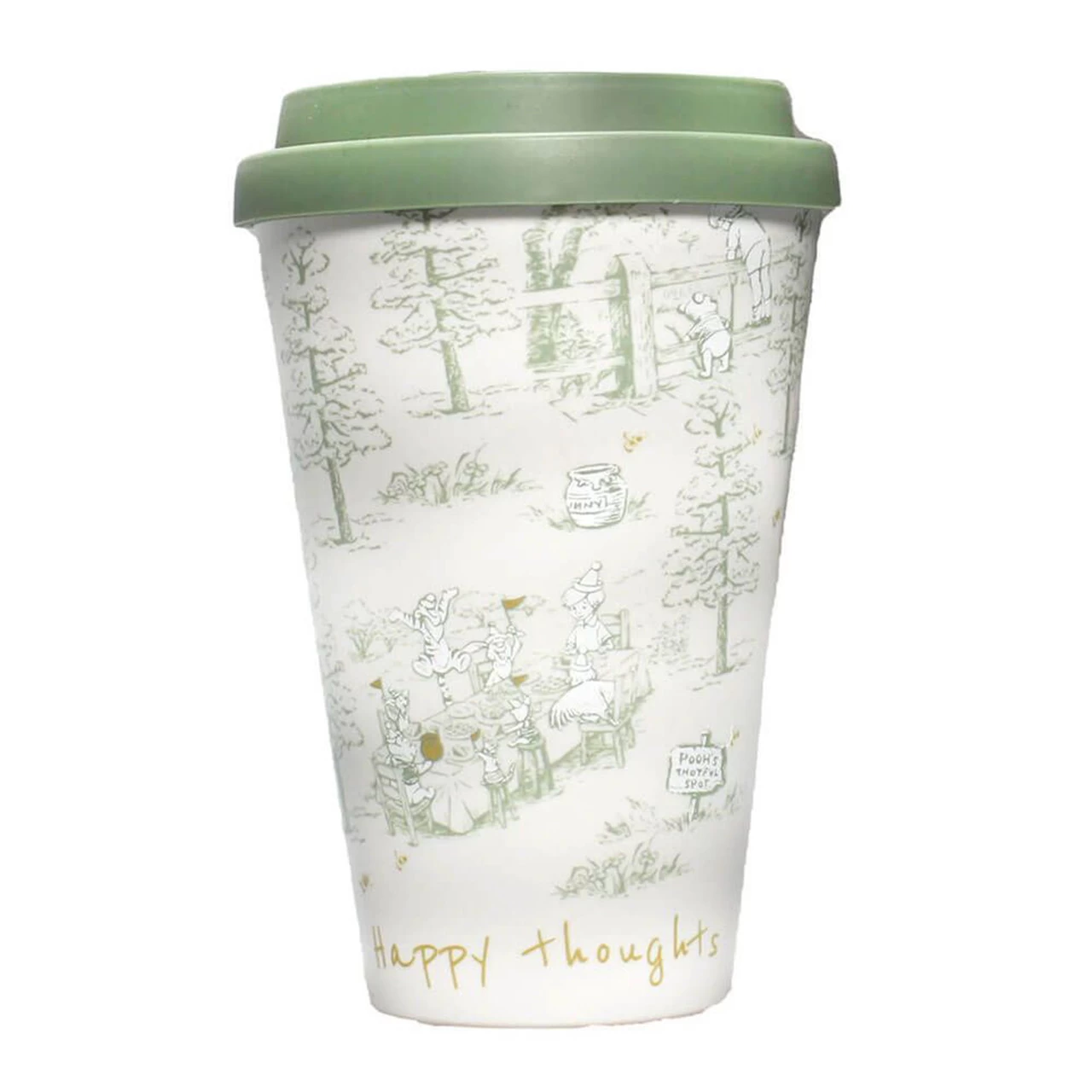 The Disney Winnie the Pooh travel mug design features a lovely wraparound design of the Hundred Acre Wood, as well as the the caption ‘Happy Thoughts’ on the reverse. This reusable travel cup has a silicone lid and band for maximum comfort.