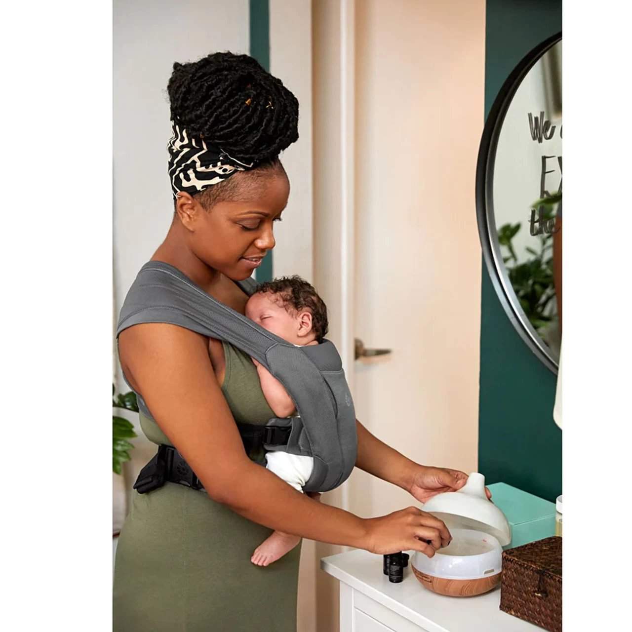 - Supports breastfeeding in carrier