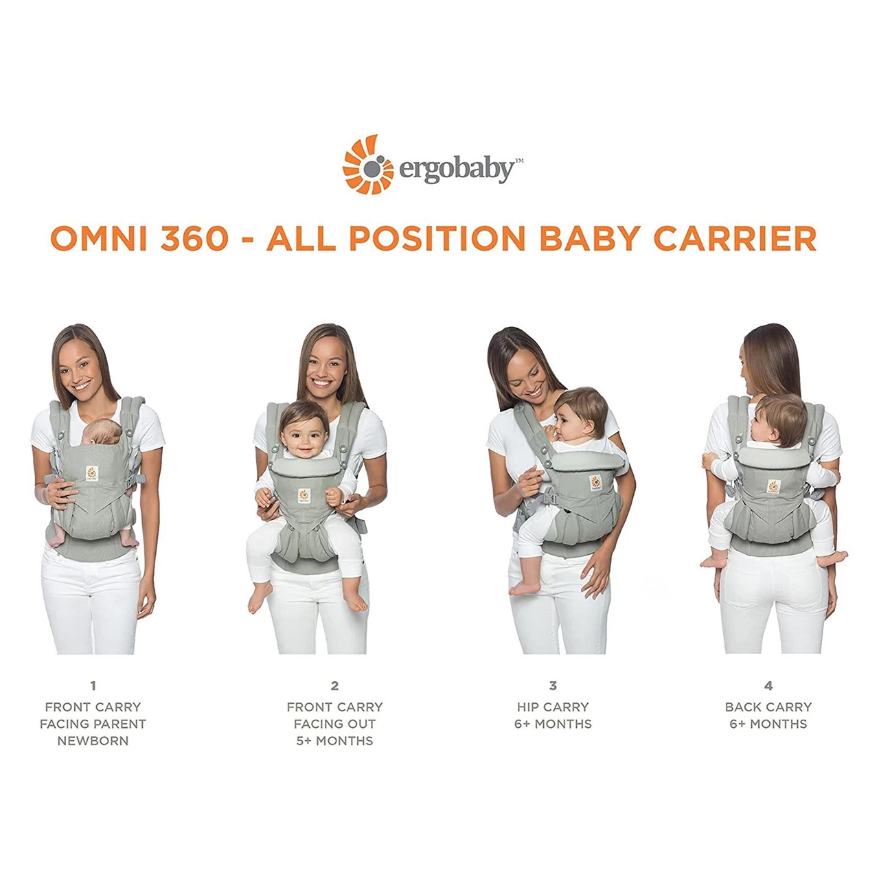 The Ergobaby Omni 360 is the all-in-one baby carrier for everyone. Designed with comfort and ease of use in mind, it is the most versatile Ergobaby carrier. Offering all carry positions, it allows you to switch baby to face out or face you on the fly, and easily adjust from newborn to toddler (7-45lbs), no infant insert needed. It features a lumbar support and extra-cushioned crossable shoulder straps and holds baby in a hip healthy M-shape position at all stages, for amazing comfort for you and baby.