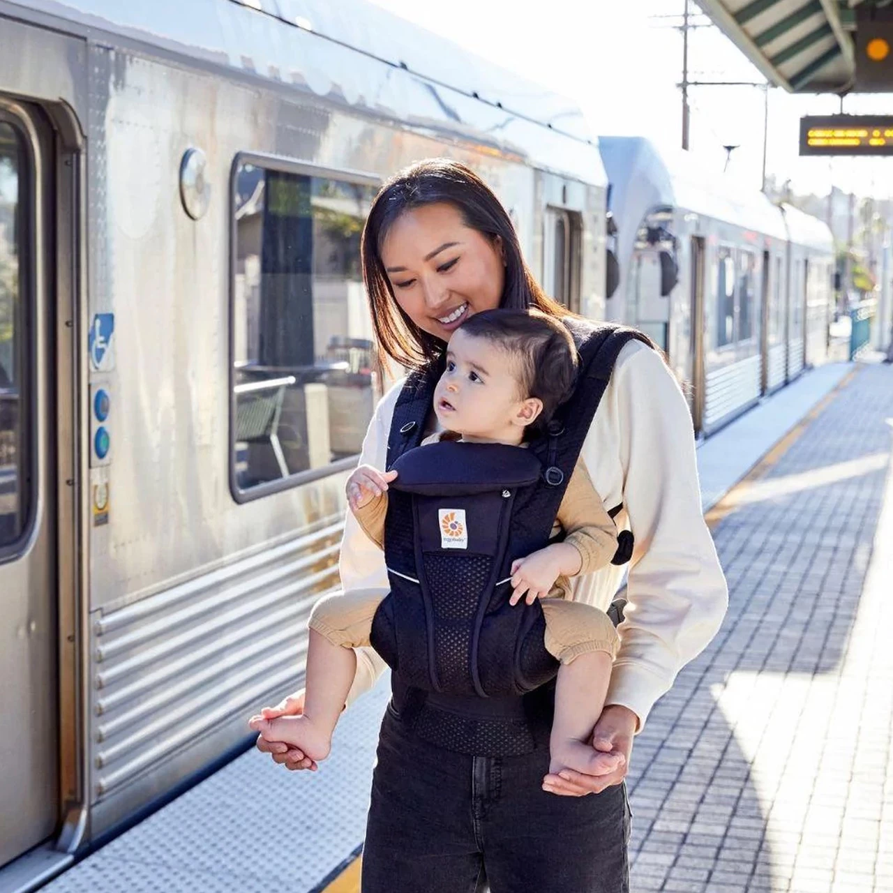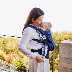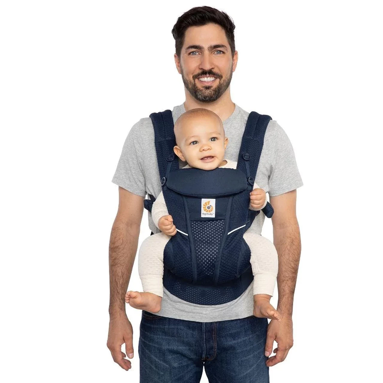 The New Onyx Midnight Blue Ergobaby OMNI BREEZE Baby Carrier brings breathability to the next level. Designed with Lightweight SoftFlexâ„¢ Mesh to create maximum airflow, it keeps both baby and you cool and dry all day. Unique diamond shaped mesh where outer ridge opens air pocket and inner micro-mesh allows easy air flow. Padded shoulder straps and lumbar support combine to avoid sore backs, shoulders and arms. This baby carrier provides all the carrying options you need as your baby grows, from newborn to toddler (0-48 months), making it the only all-in-one carrier you’ll ever need. You can carry your little one inward facing, outward facing, hip carry and back carry – whatever your preference is.