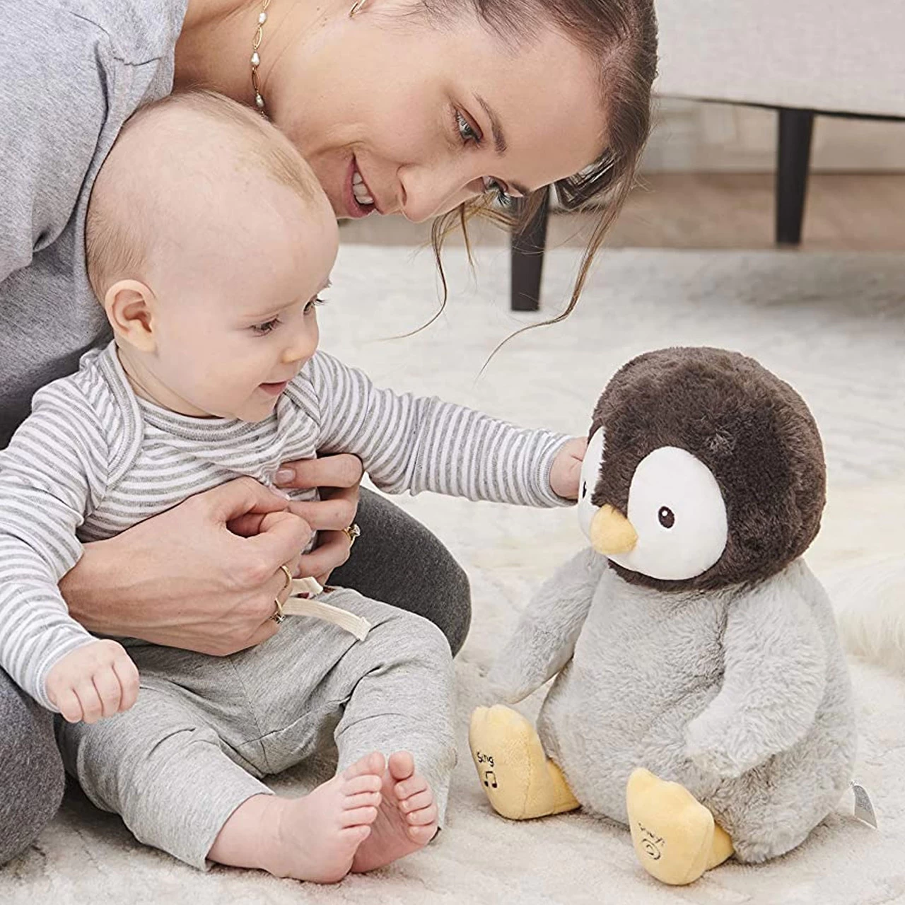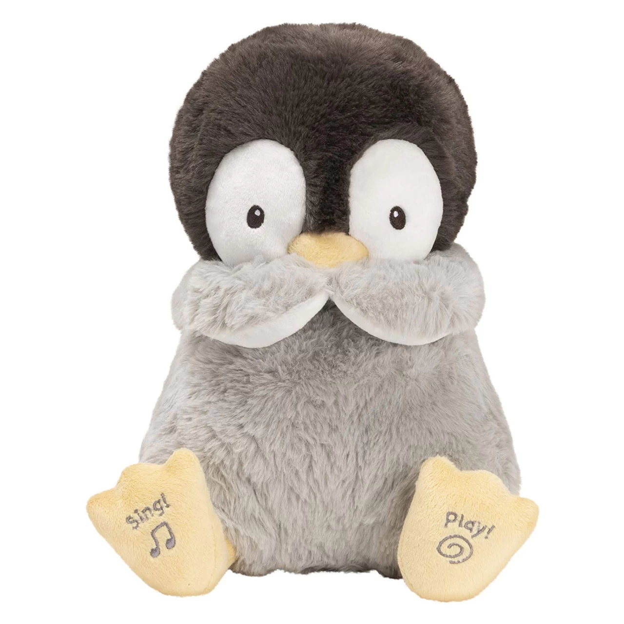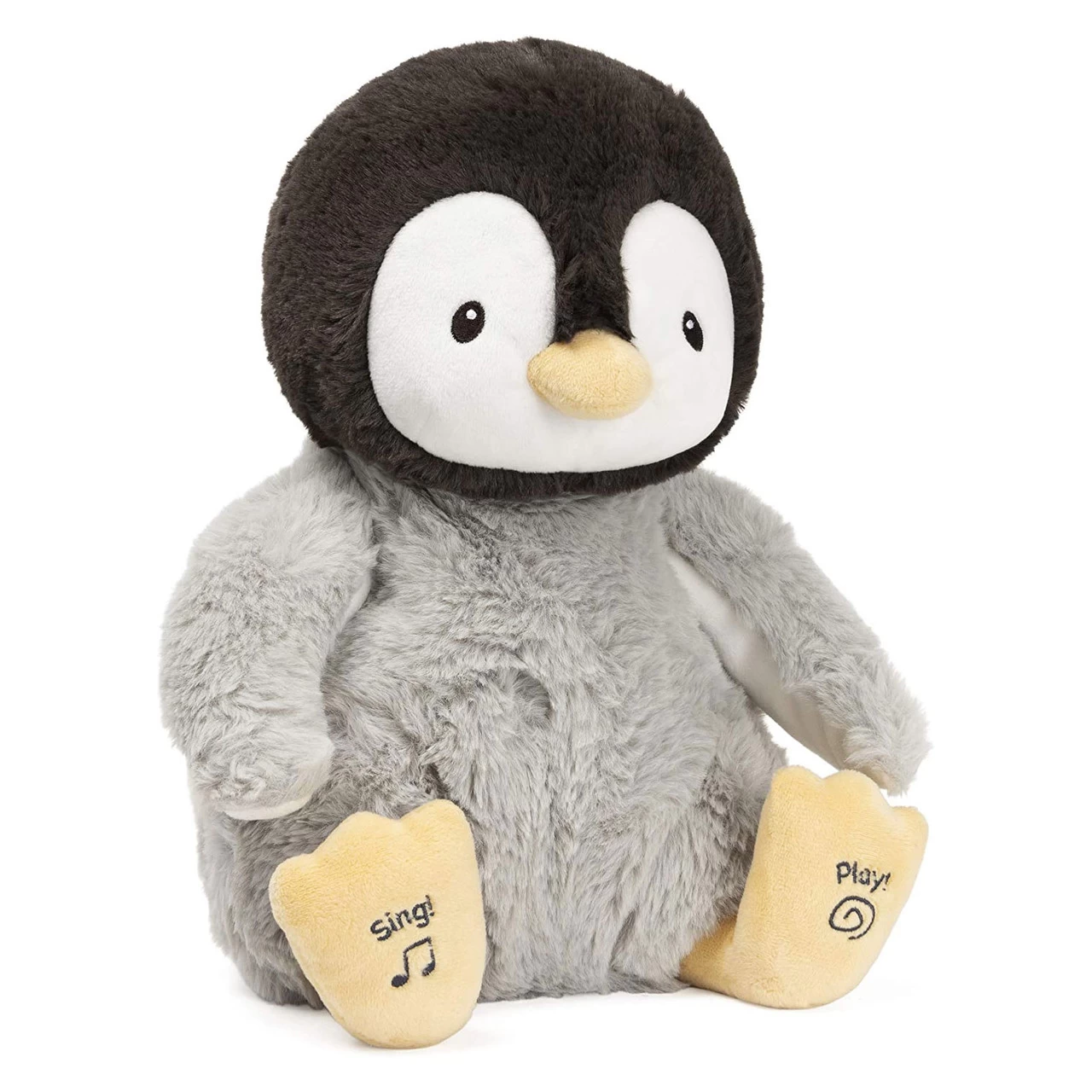 This adorable Gund Animated Kissy is the sweetest, most snuggly baby penguin that loves to blow kisses! Press Kissy’s yellow feet to hear her sing and move her flippers along with “Frere Jacques.” Kissy lifts her wings to her beak and back down in a “kissy” motion to teach little ones how to blow a kiss back to her and all of their loved ones! Kissy has baby safe embroidered features, super soft limbs, and a huggable body that is safe for all ages, right from newborn.