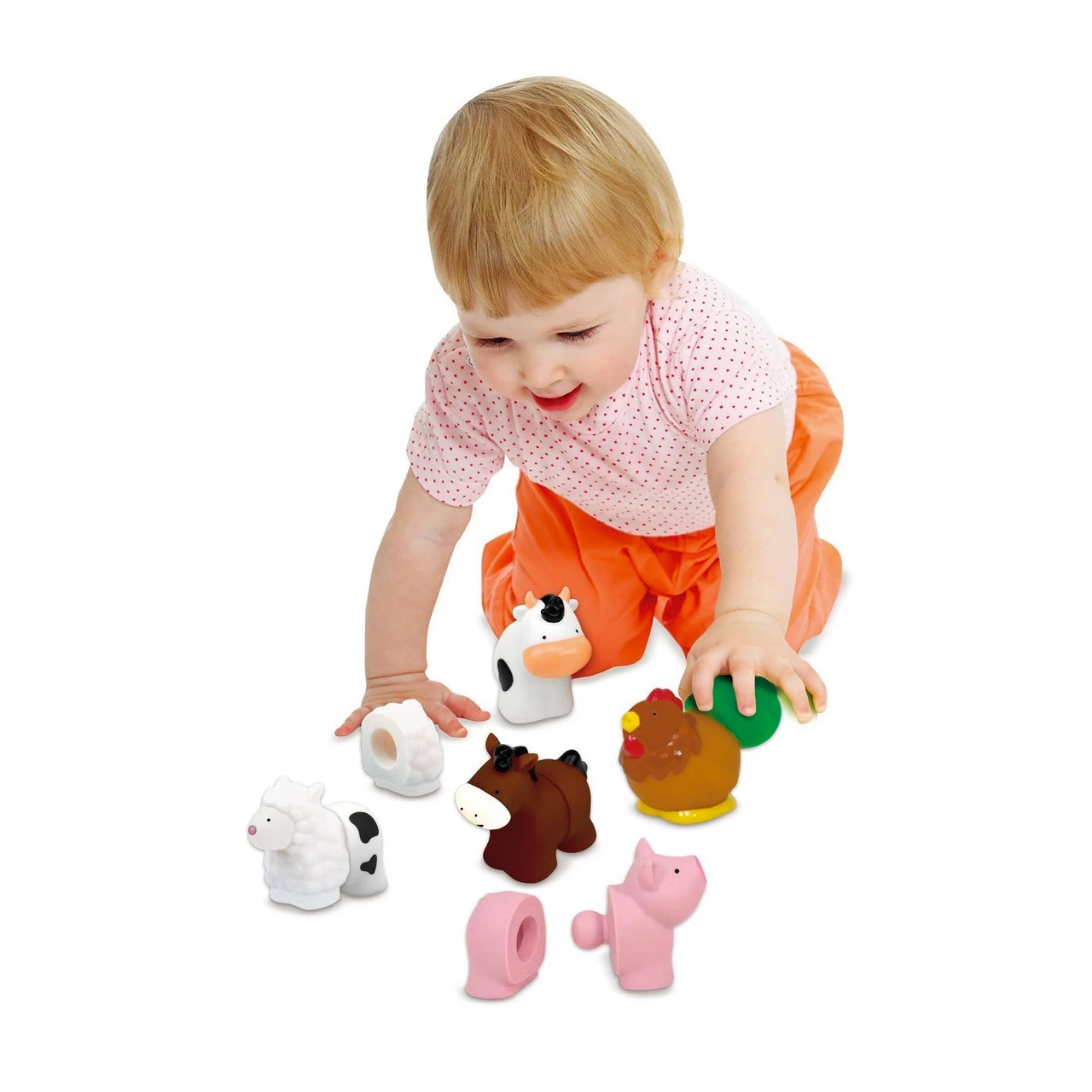 Five adorable animals pop together, pull apart, and add up to a farmyard of fine motor fun with this K’s Kids Pop Blocs Farm Animals set. Ten linkable pieces include five heads and five tails to make a horse, cow, sheep, pig, and hen . . . or any mixed-up combination. The colourful pieces, compatible with all Pop Blocs play sets, connect with knob-and-socket closures that are easy enough for little hands but provide nice resistance work for growing motor skills and finger strength. The blocks are great for cognitive skills too: Textured patterns and colours give clues to each animal solution, encouraging multi-sensory perception. Most of all, this crew of five adorable animals offers lots and lots of fun for little babies working on their fine motor skills.