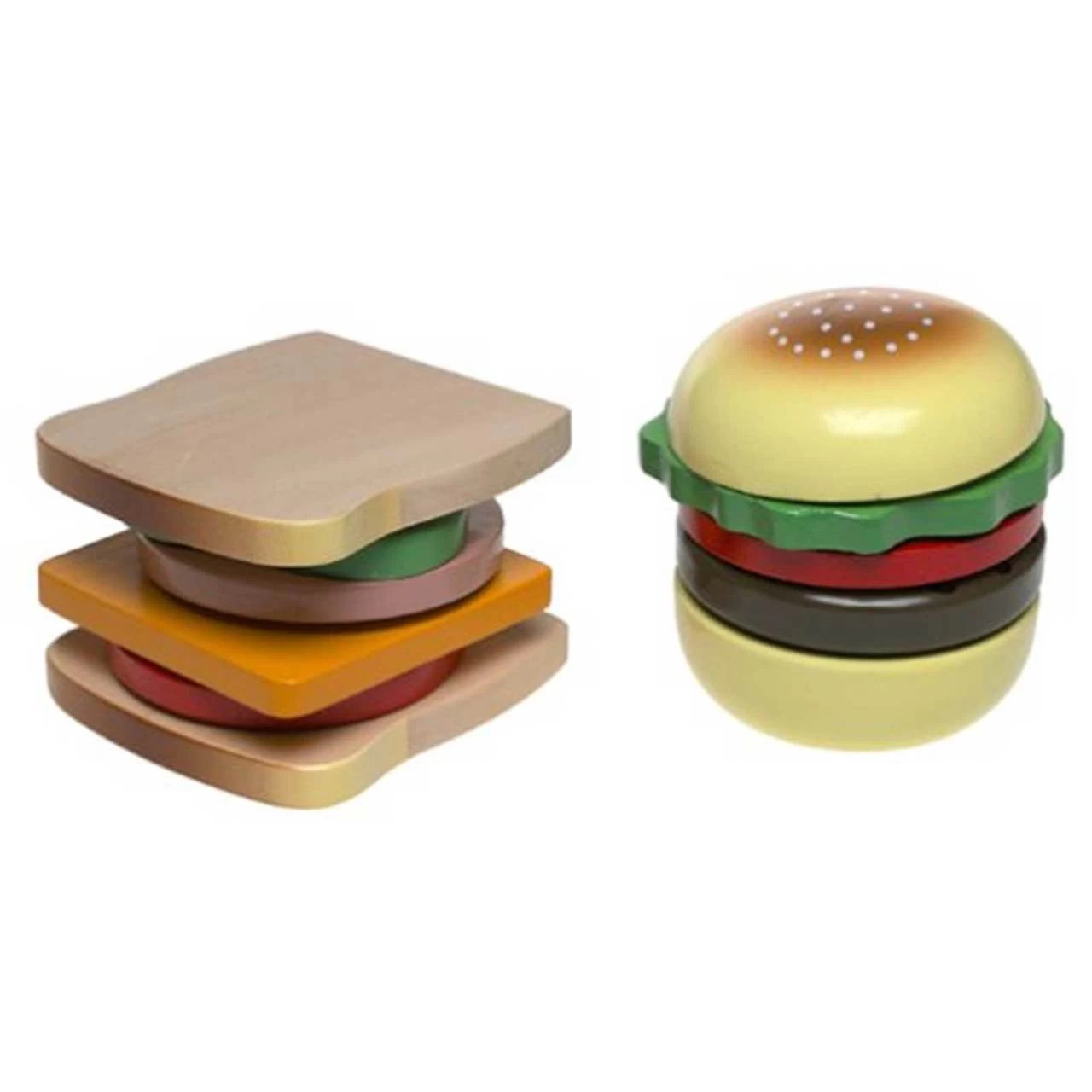 - 16 wooden sandwich ingredients + 1 wooden storage tray