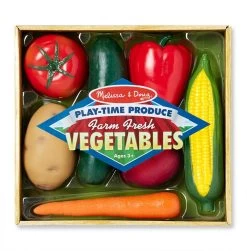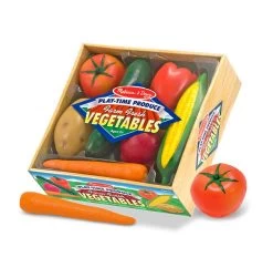 Play groceries with this Melissa & Doug Play Time 7 Pieces Vegetables Set. This crate of “farm fresh” delicious vegetables, are made of durable moulded plastic to withstand years of supermarket, restaurant, and farmer’s market play. Presented in a crate of harvested seasonal favourites.