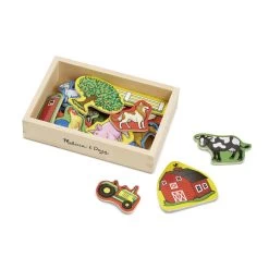This Melissa & Doug Box of 20 Farm theme Magnets is a sure hit with toddlers and kids. With 20 colourful, easy to position, wooden magnets, such as a pig, tractor, barn, tree and more, little ones will love looking and naming all of them. Stored in a compact wooden case keeps these magnets neat and tide while they are waiting to play. Create stories or create a game of sorting and grouping all the different creatures in this toy set.