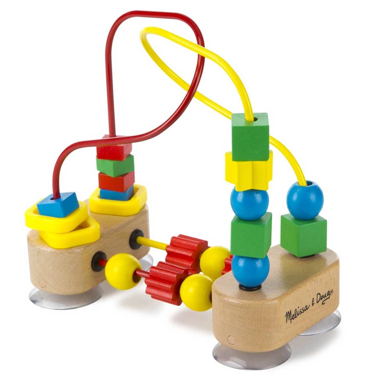 This fantastic Melissa & Doug First Bead Maze is great for entertaining baby while sitting in a high chair. Featuring vivid colours, multi-shaped beads that spin and slide along red and yellow wire pathways anchored by a strong suction cup base to stop little hands throwing it onto the floor. This wooden toy encourages colour recognition, hand-eye coordination, and fine motor development through play!