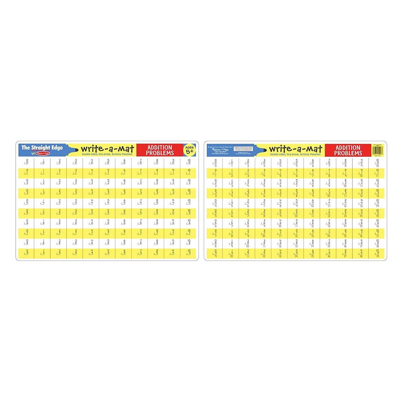 Add new excitement to mealtime with these Melissa & Doug educational and entertaining double-sided, write on, wipe off placemats. These durable activity mats are ideal for use with write on, wipe off crayons and are available in a range of topics from math to maps! Children can practice writing their maths addition problems while waiting for dinner or out at a restaurant.