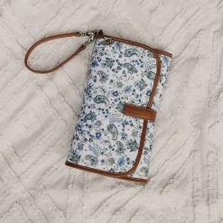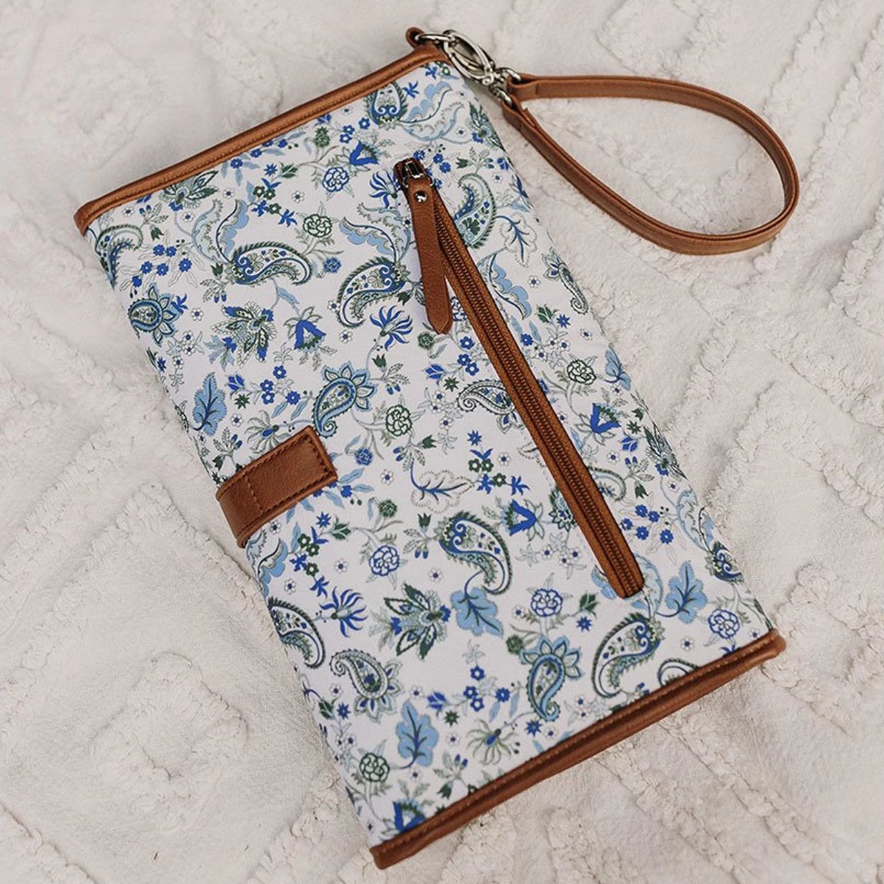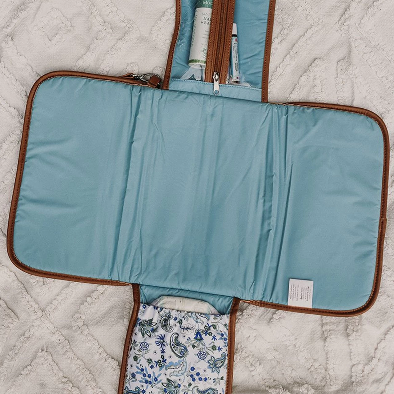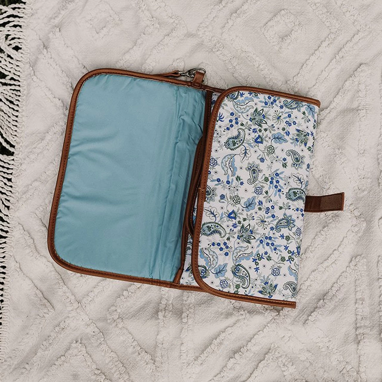 Change baby’s nappy anywhere in comfort and style with Blue Paisley OiOi’s luxurious Travel Change Mat! Available in OiOi’s stunning Paisley print, this compact clutch unfolds to reveal an extra-padded change mat, an elasticised storage pocket for nappies and a clear compartment for your wipes & creams. On the back of the clutch, is an easy-access zip pocket for any extras you need on the go (such as phone & keys).