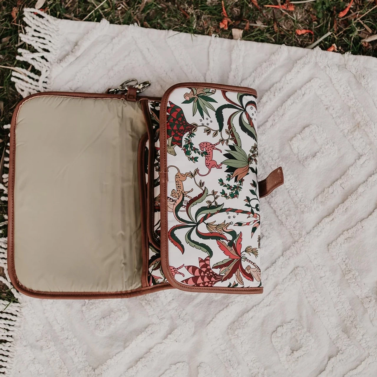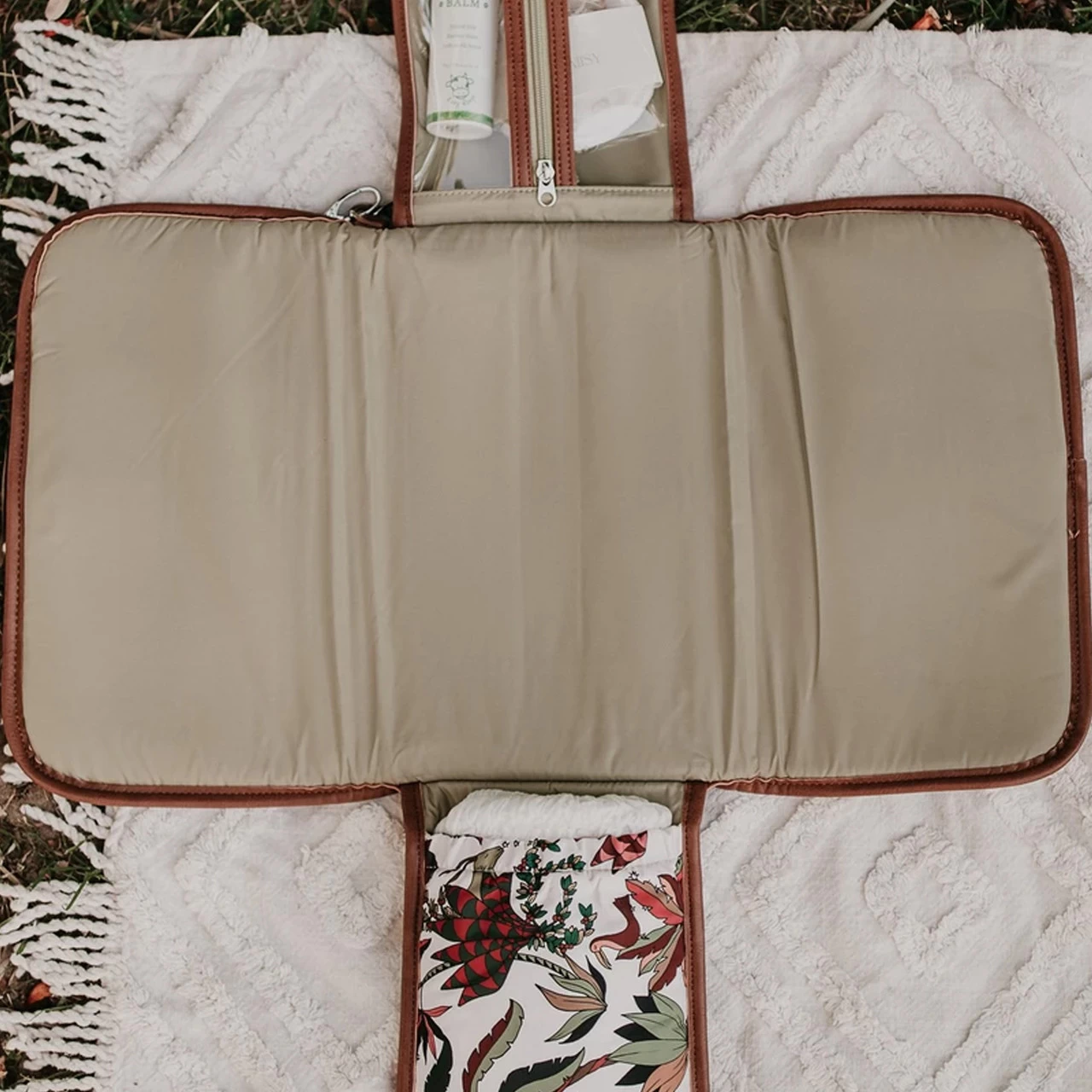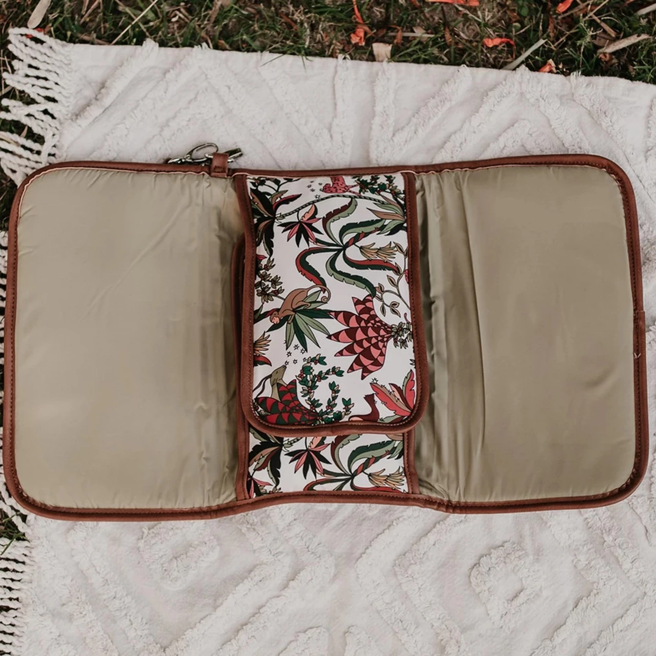 Available in an elegant Jungle floral pattern with Beige Lining, this compact clutch unfolds to reveal an extra-padded change mat and two practical storage pockets for nappies, wipes & creams. On the back of the clutch, is an easy-access zip pocket for any extras you need on the go (such as phone & keys).
