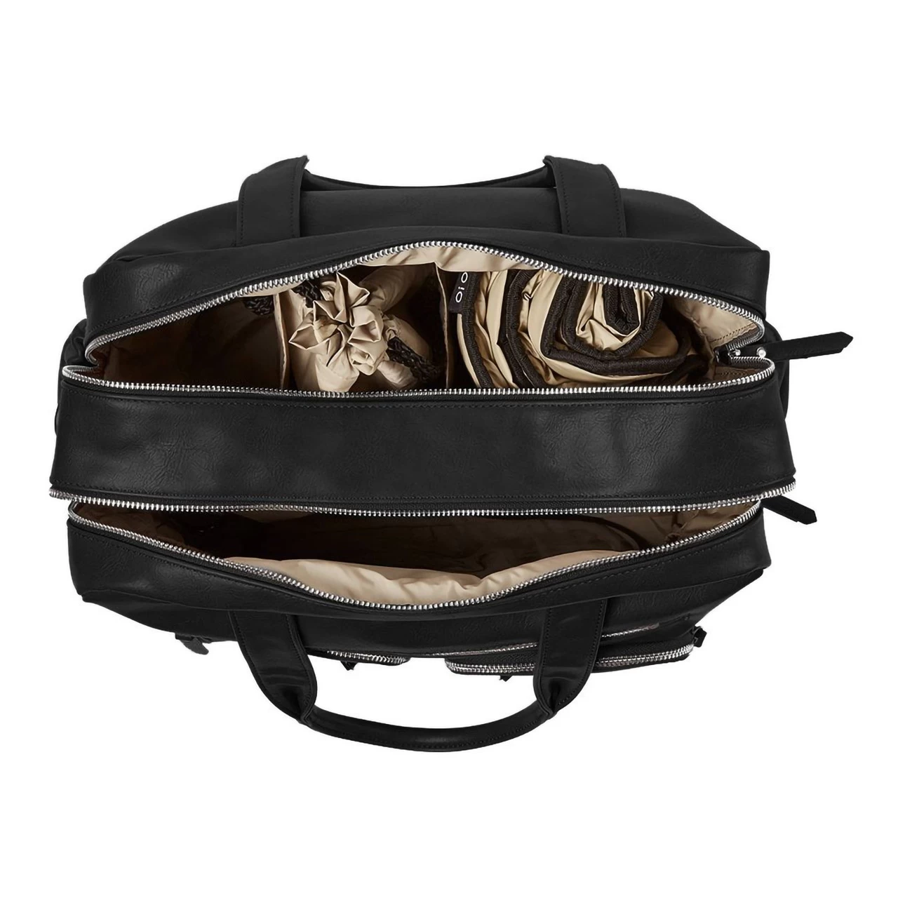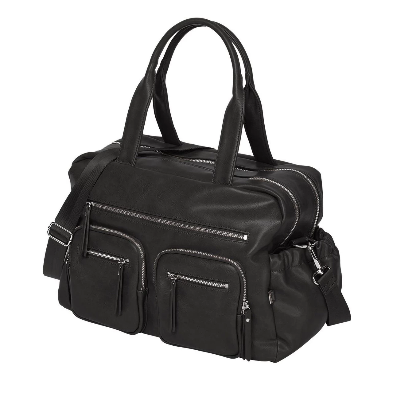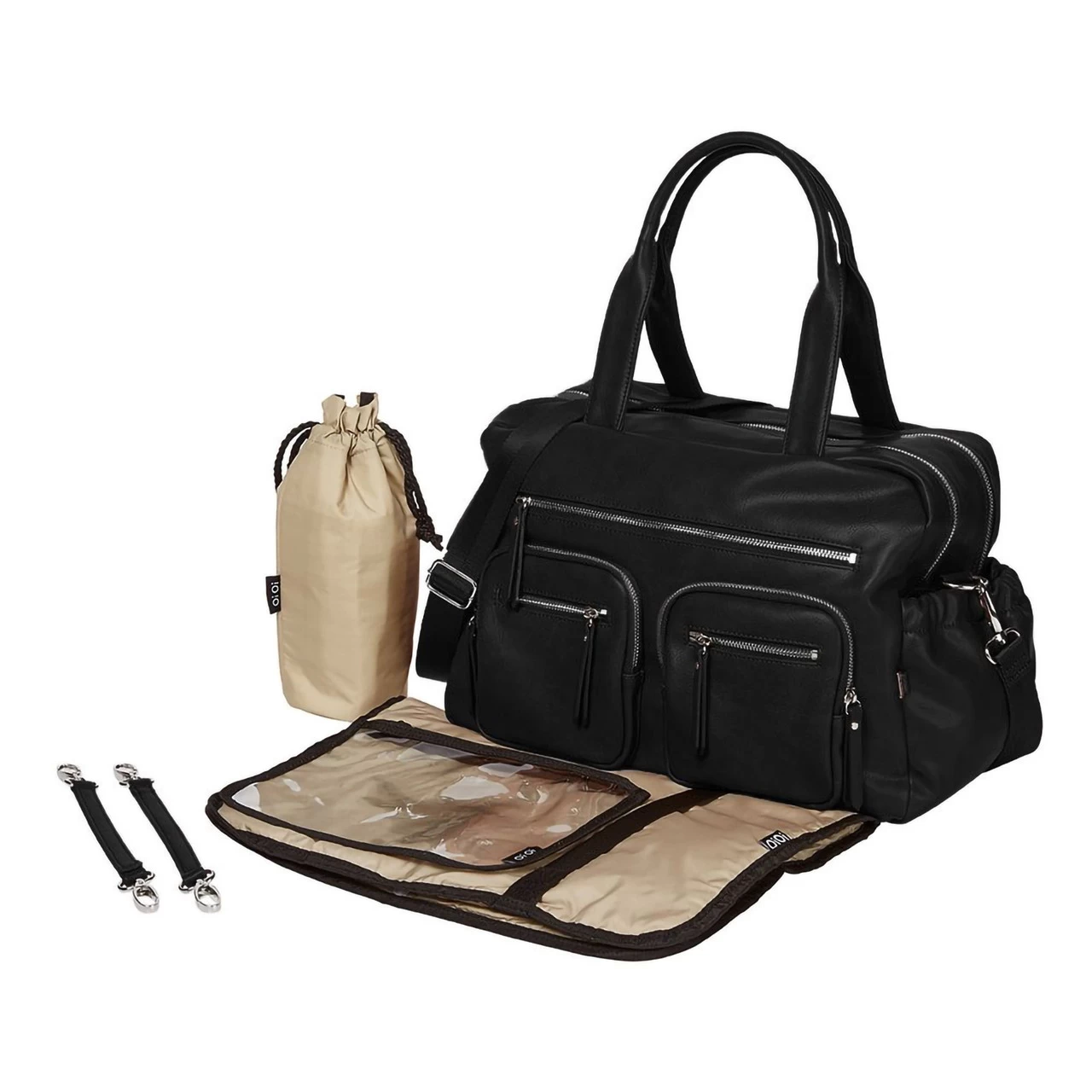 The award winning OiOi Carry All Nappy Bag is loved for its ingenious double compartments and soft touch textured durable material with water-resistant finish. Available now in this stunning Premium Black Faux Leather, this bag will co-ordinate with any outfit or pram while also being a popular unisex bag for its neutral colour.Â