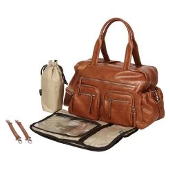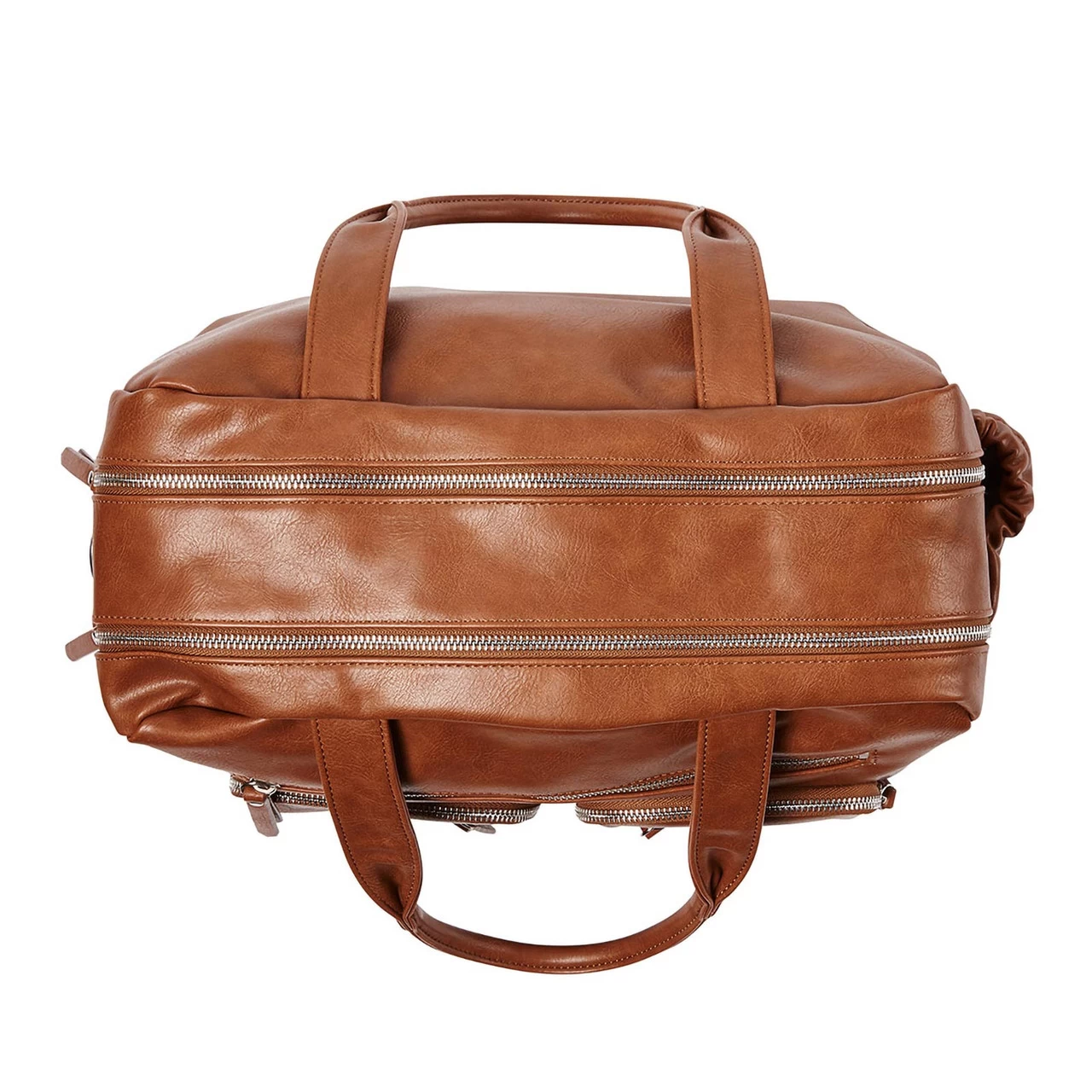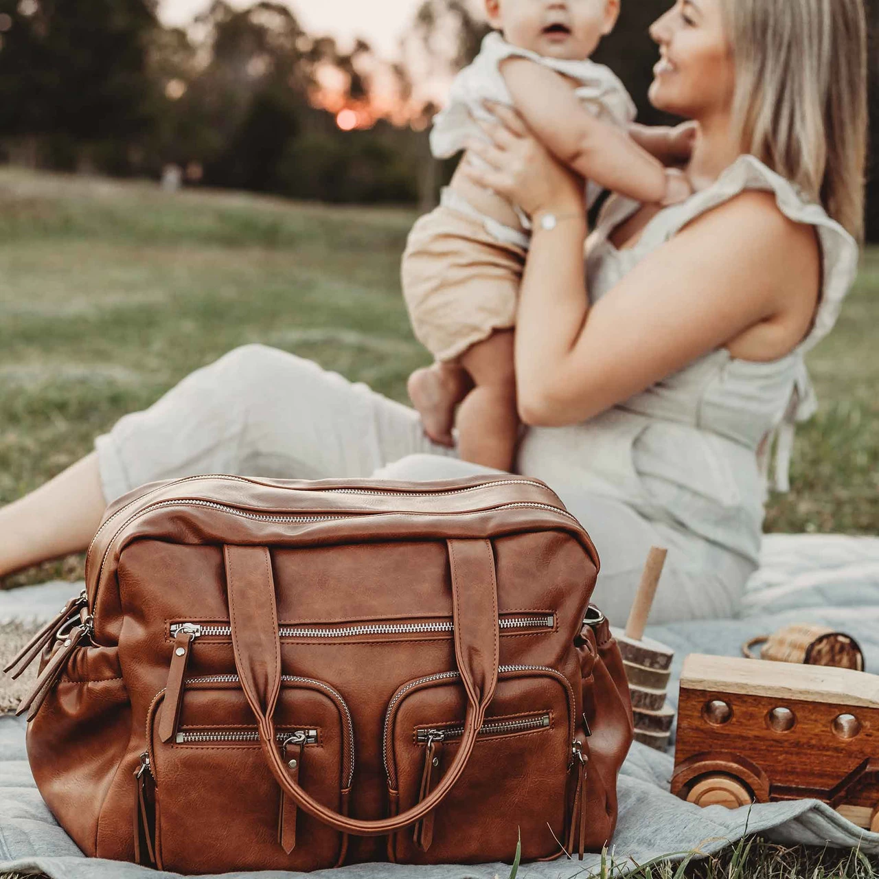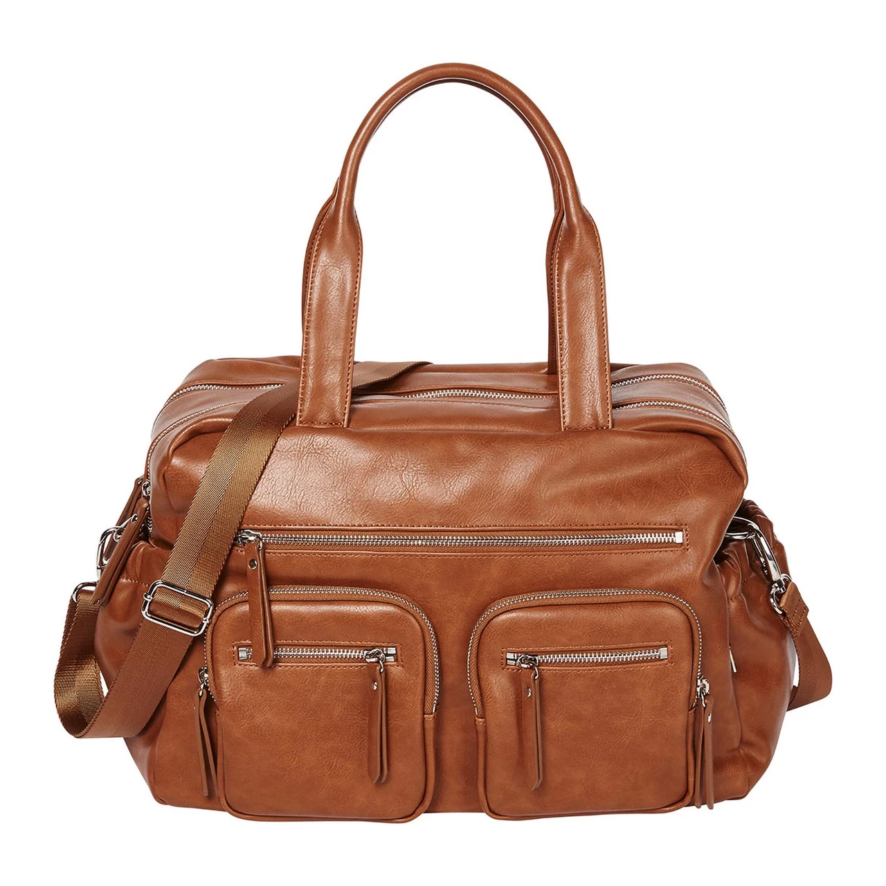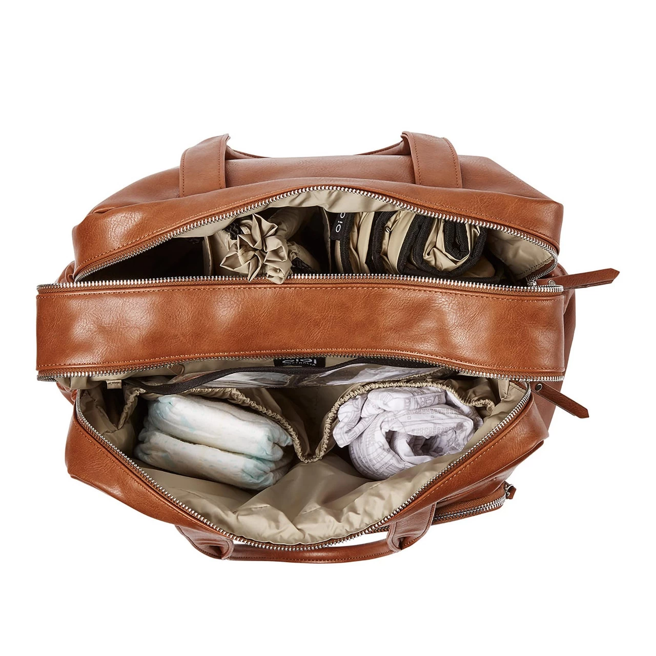 The award winning OiOi Carry All Nappy Bag is loved for its ingenious double compartments and soft touch textured durable material with water-resistant finish. Available now in this stunning Premium Tan Faux Leather, this bag will co-ordinate with any outfit or pram while also being a popular unisex bag for its neutral colour.Â