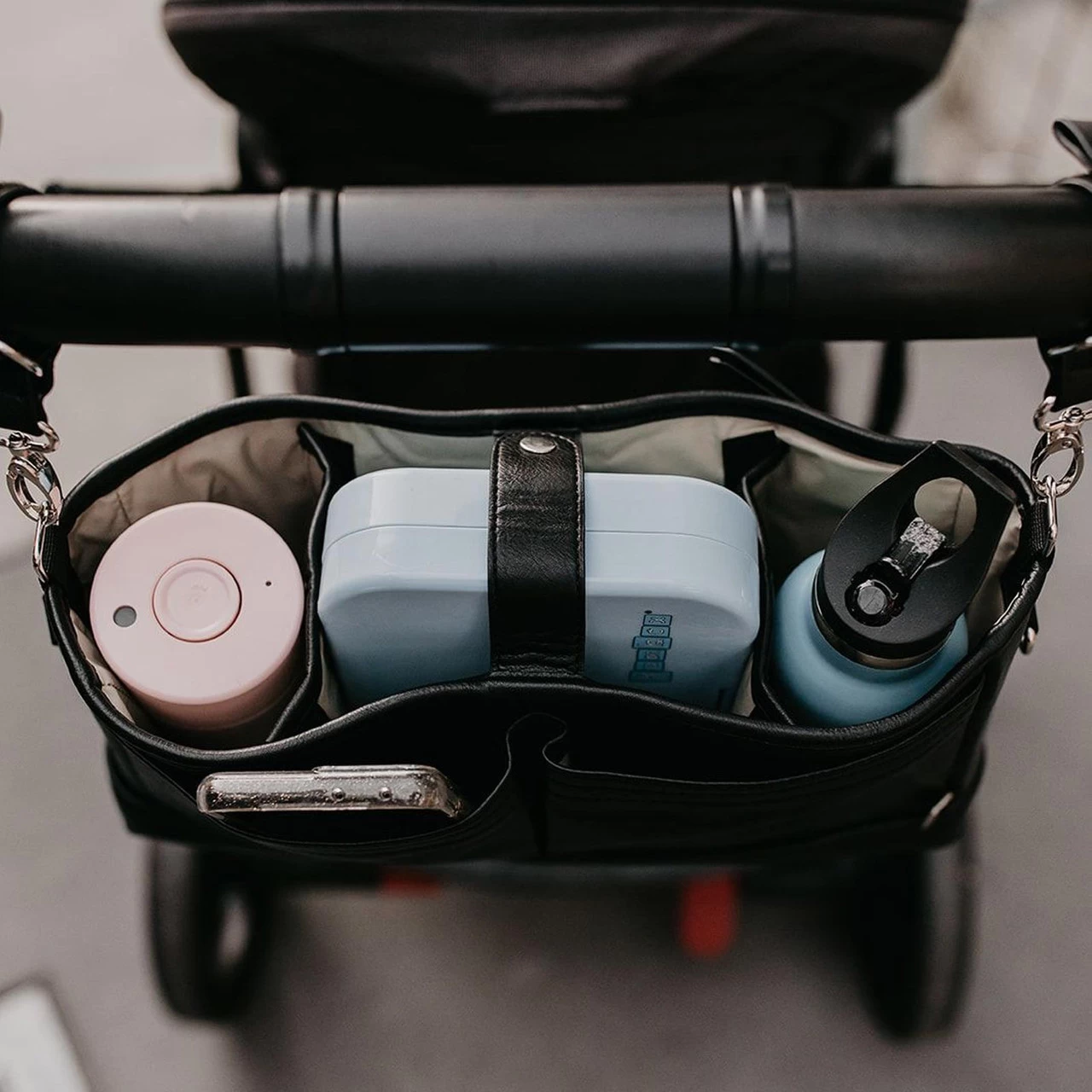 As fashionable as it is functional, the OiOi Stroller Organiser is now available in a Black Premium Faux Leather. Designed to keep all of your baby and toddler essentials in easy reach when on the go! Designed for the modern parent who want stylish and convenient storage while out and about with their little ones. Perfect for those who want to match their Black leather handles of their pram.