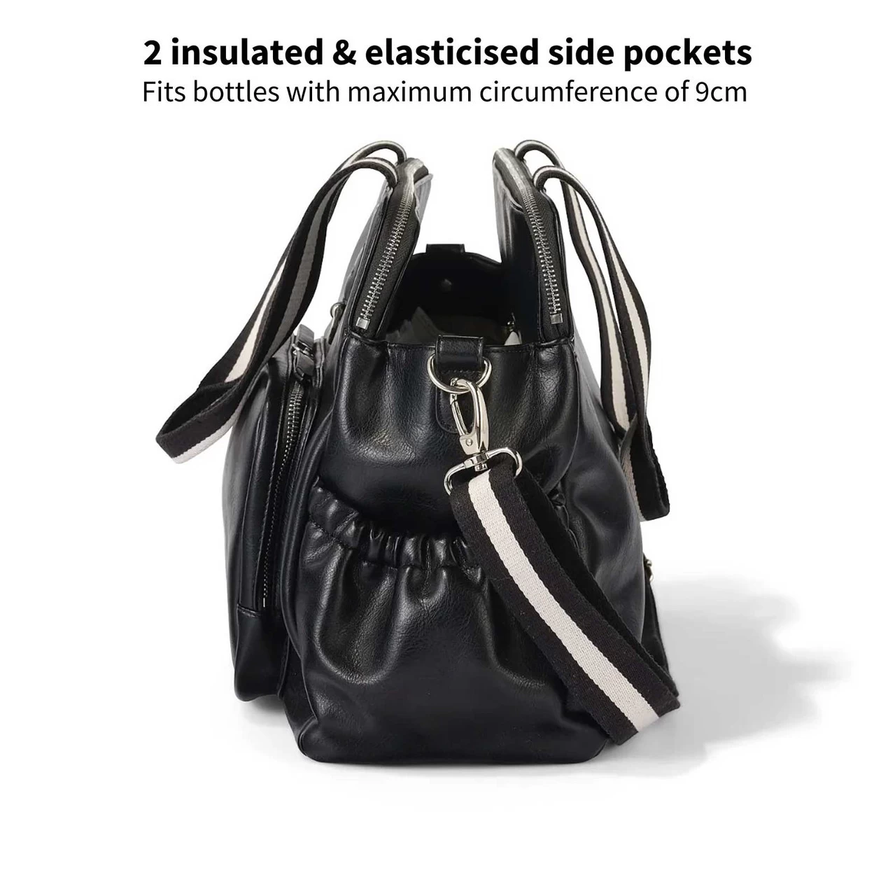 With 11 total pockets to hold both your and baby’s essentials, this nappy bag holds everything you need! This stylish bag will co-ordinate with any outfit or pram while also being a popular unisex bag with its timeless black colour.Â