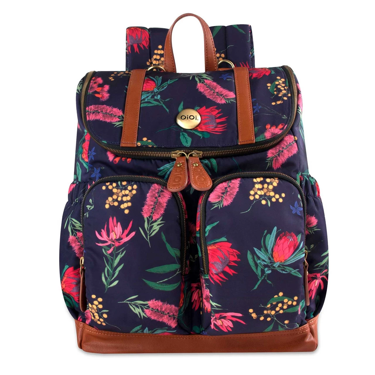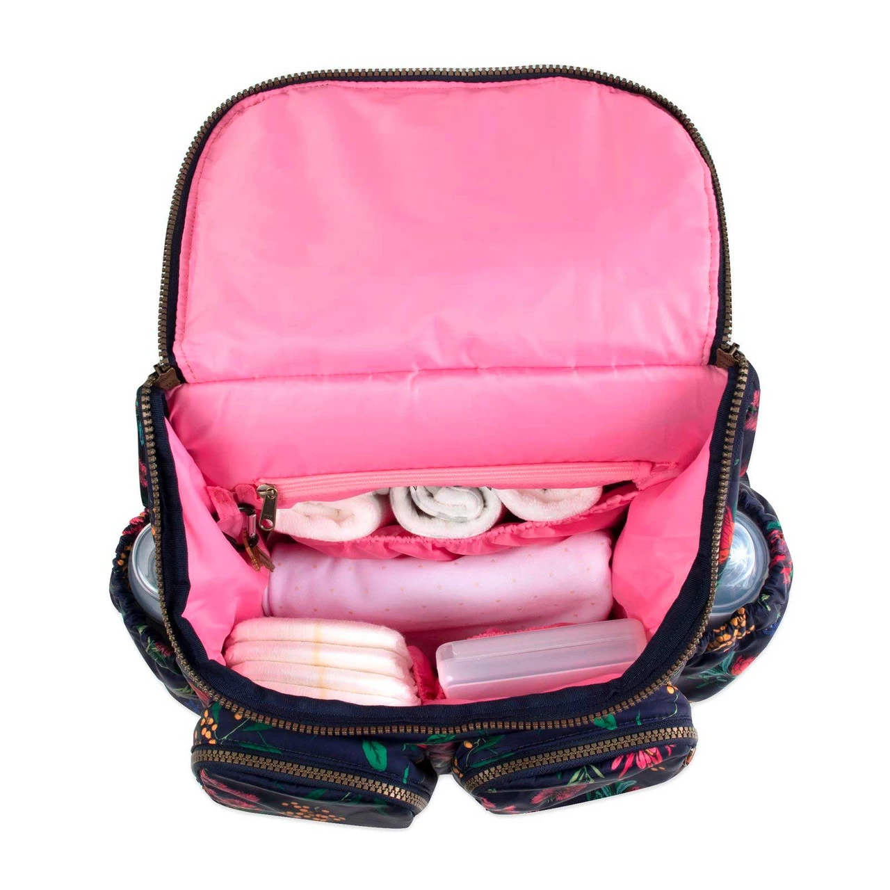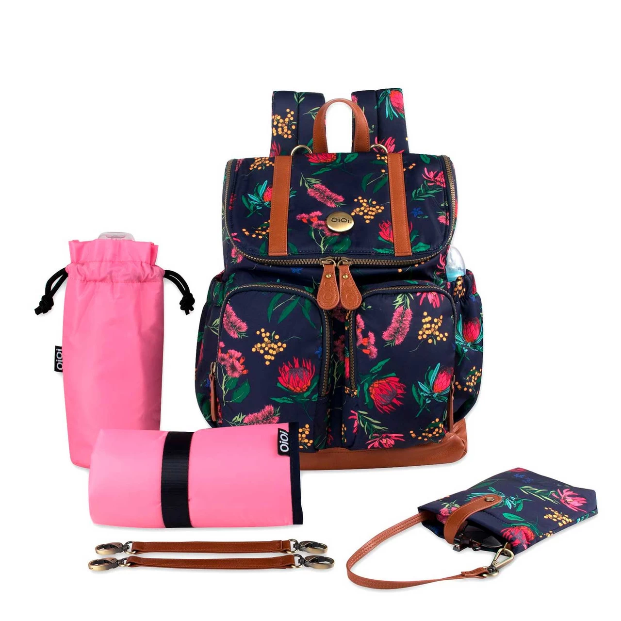 Pretty and functional, the OiOi Multi Pocket Diaper Backpack is a stylish and comfortable way to carry all your baby’s needs. Grab the handle of the diaper backpack and sling it on your back with the adjustable padded shoulder straps, or attach it to the stroller for a day at the zoo. This attractive diaper bag comes with handy pockets to corral all your supplies, and it includes a cushioned changing mat, insulated bag for baby’s bottle, and a separate pouch to keep your shades scratch-free.