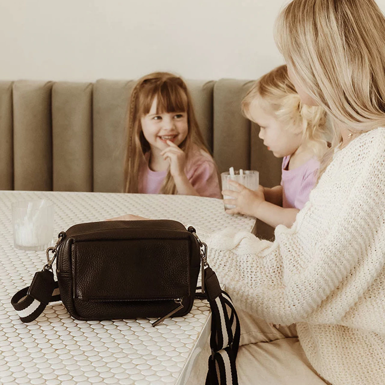 The new OiOi leather PLAYGROUND BAG. Designed for those short trips out and about, whether it is ducking down to the local park with your little one or getting drinks with the girls, this new cross-body bag will be your go-to every single day.