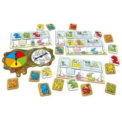 Spread the cards in the middle of the table, spin the spinner and race to find a dirty dino that matches by colour and type. Once everyone has a tub full of clean dinos, count the number of bubbles…the player with the most wins the game!