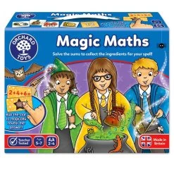 Orchard Toys Magic Maths is an exciting and spellbinding maths game for children aged 5-7. Players take turns to solve the sums and fill their boards with yucky spell ingredients, from worm-infested cupcakes to brains and bogies! Once players have worked out the answer to the sum, the magic begins…by turning over their card and rubbing the heat sensitive patches to reveal if their answer is correct.
