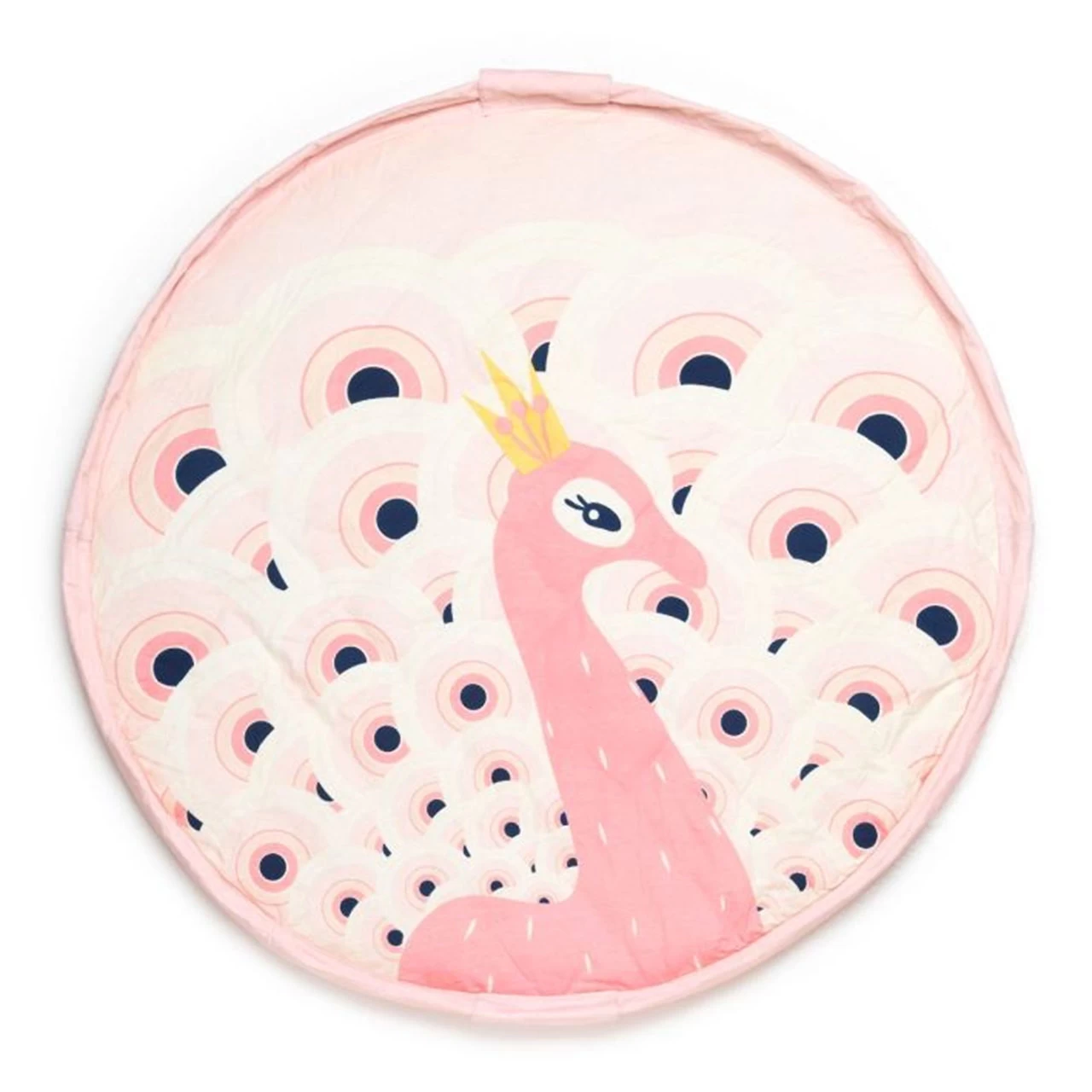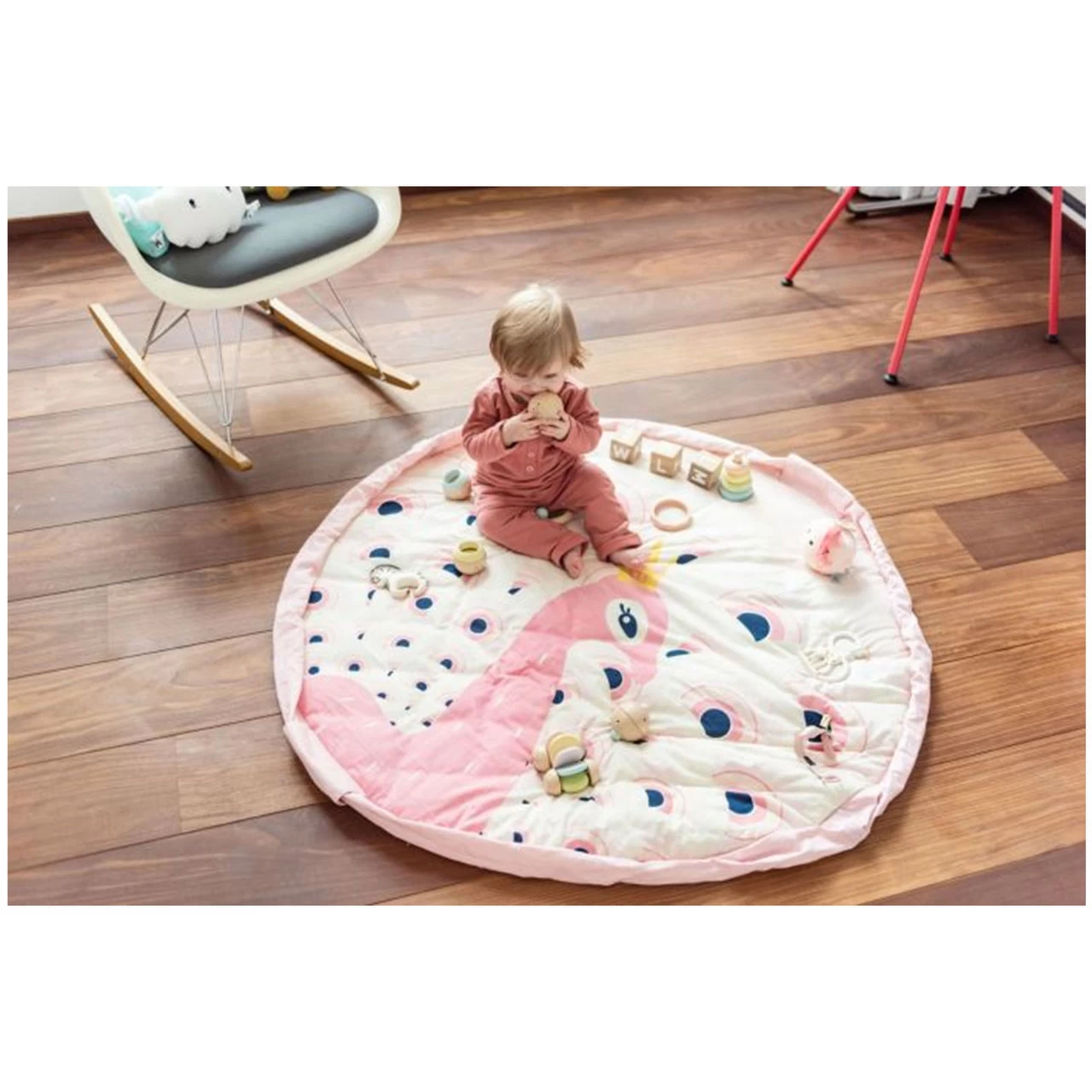 Play&Go Soft Collection Play Mat Pink Peacock is a unique padded baby play mat that can turn into a storage toy bag. To make the product baby safe, there are cotton flap covers that makes sure baby can’t access the drawstring ropes inside. These gorgeous bags make a great idea for organising your nursery and playroom storage. This stylish play mat can also be used as a travel mat, change mat or diaper bag even, that it is so practical and function for your every day use.Â