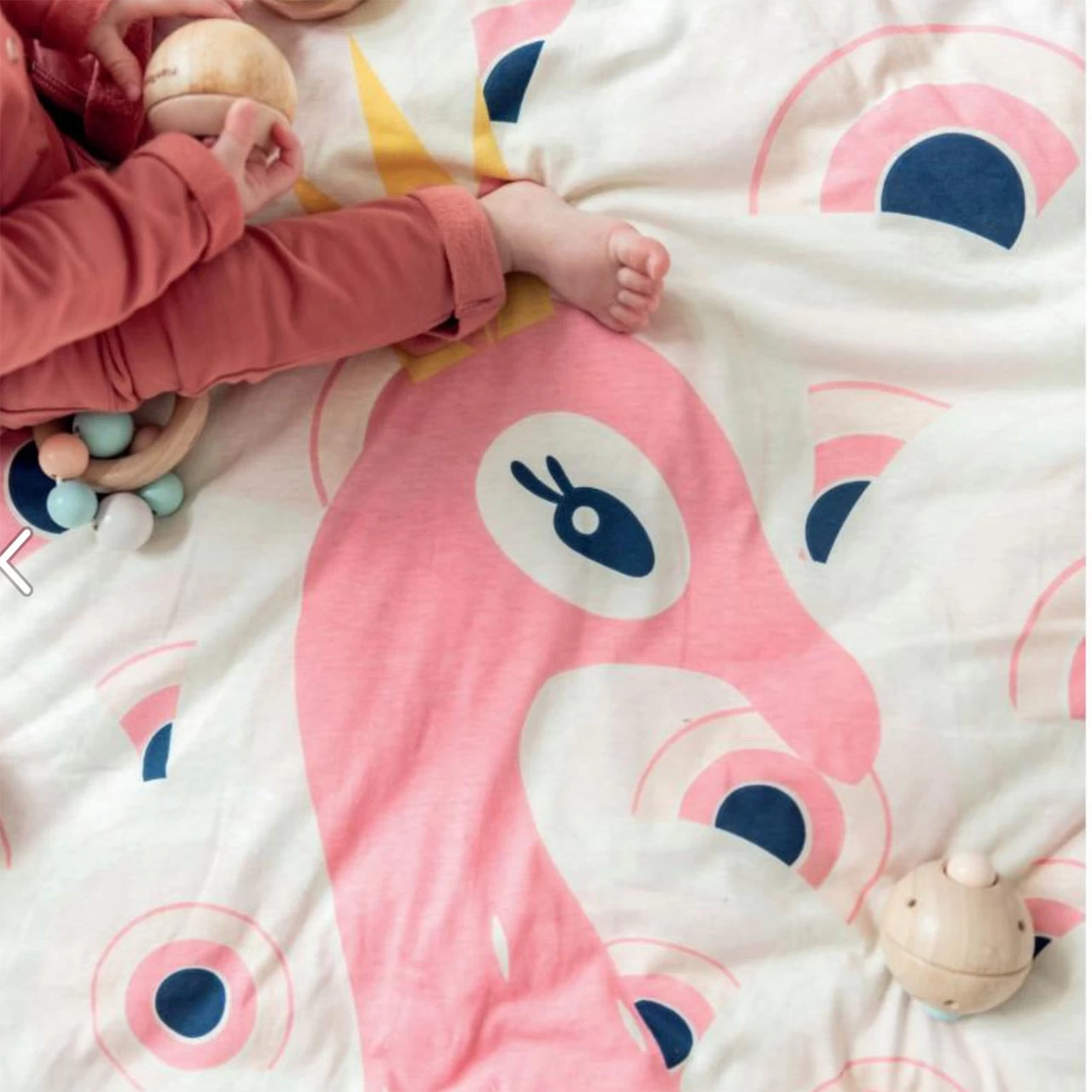 A two in one toy storage bag and play mat is every child’s dream. Storage is so simple, dolls, cars, blocks and more can all be quickly kept away with one swing. Measuring 120cm in diameter, it’s portable, hard wearing and perfect for taking to the park, beach or trips to grandparents, especially handy when baby’s room in upstairs.Â