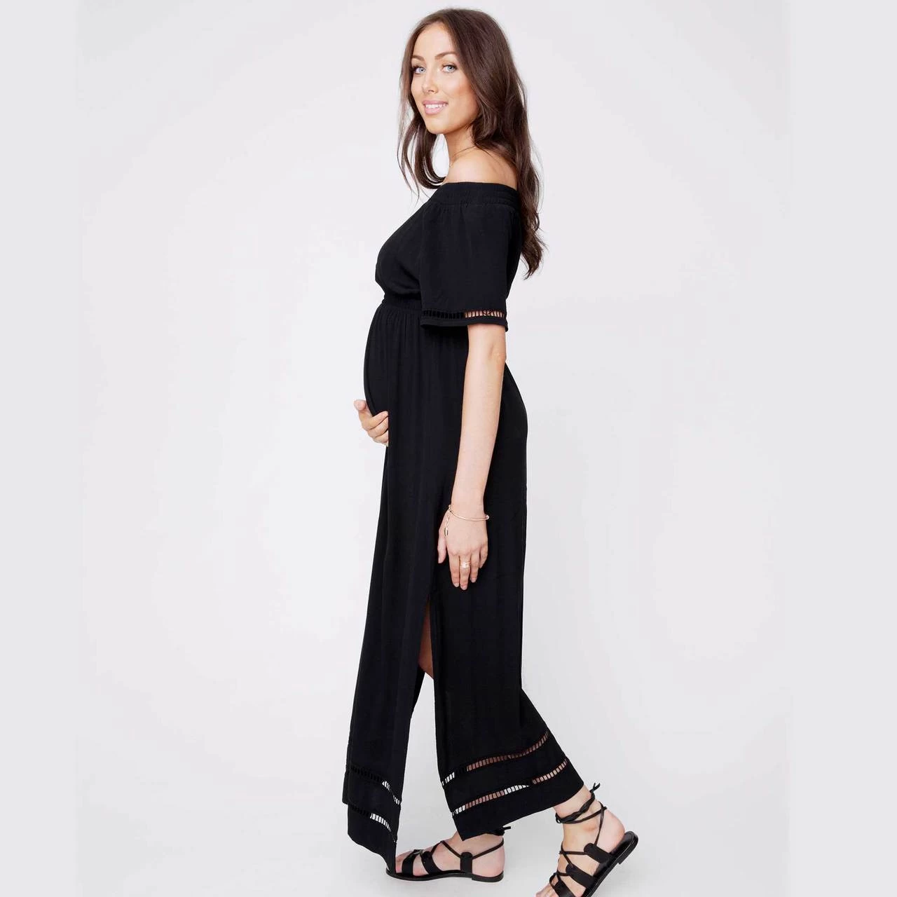 This best selling Ripe Maternity Cold Shoulder Maxi Dress is perfect for pregnancy, nursing and beyond. Featuring an on-trend cold shoulder neckline, a soft gathered waist and splits in its maxi length skirt. Dress up the Cold Shoulder Maxi with wedges or keep it casual and pair with sandles or sneakers. You’ll love this one long after baby arrives.