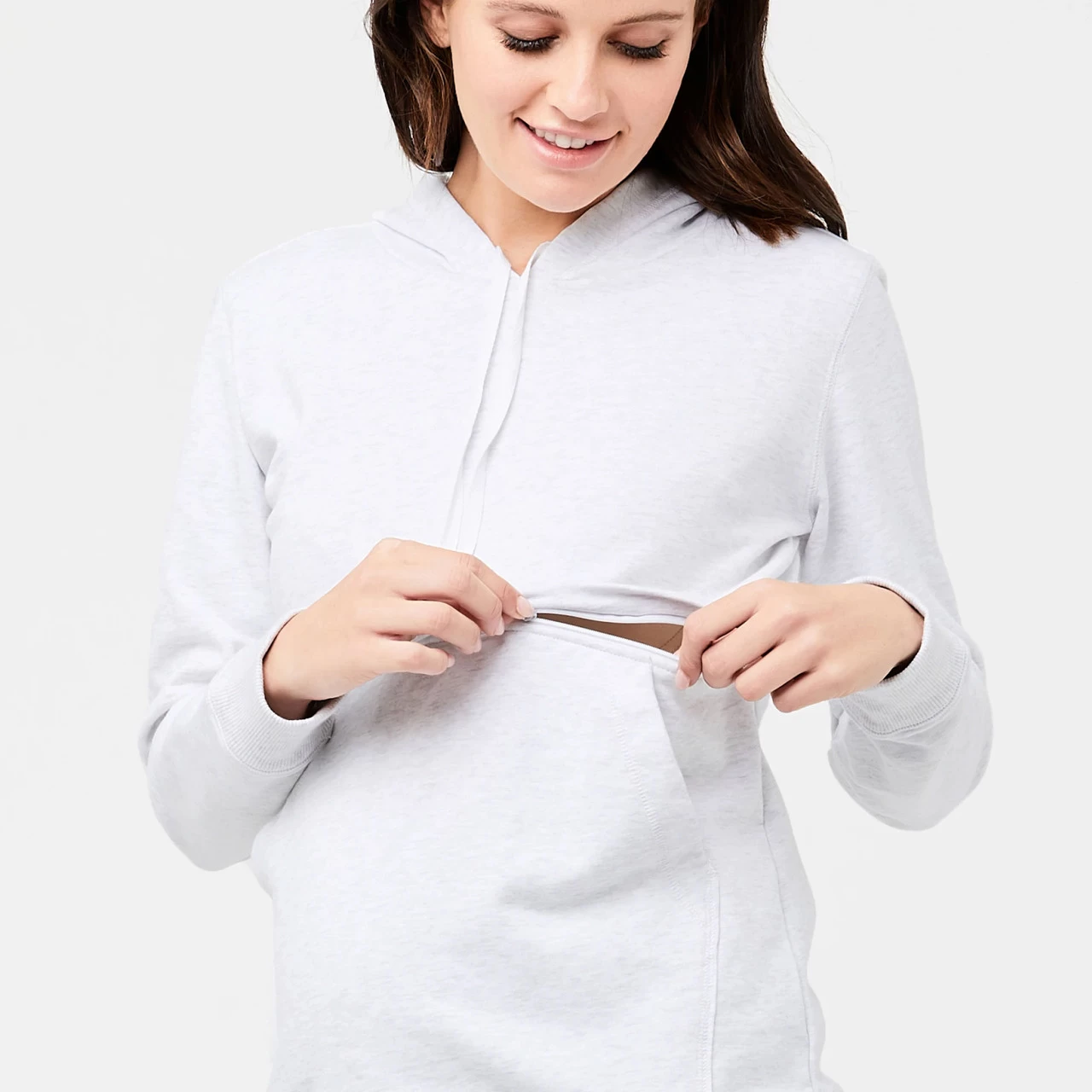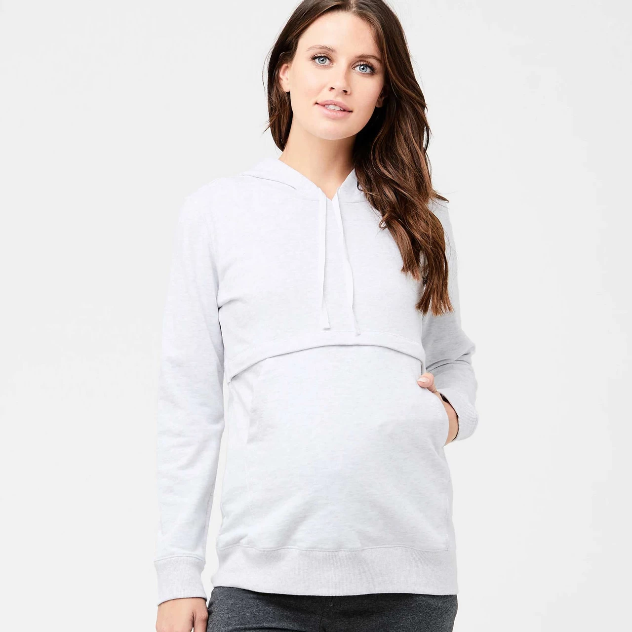 Keep cosy in the latest Ripe Maternity Kitty Nursing Hoodie. This cool weather sweater features a hood, front pouch pocket and a hidden horizontal zip for easy nursing access.