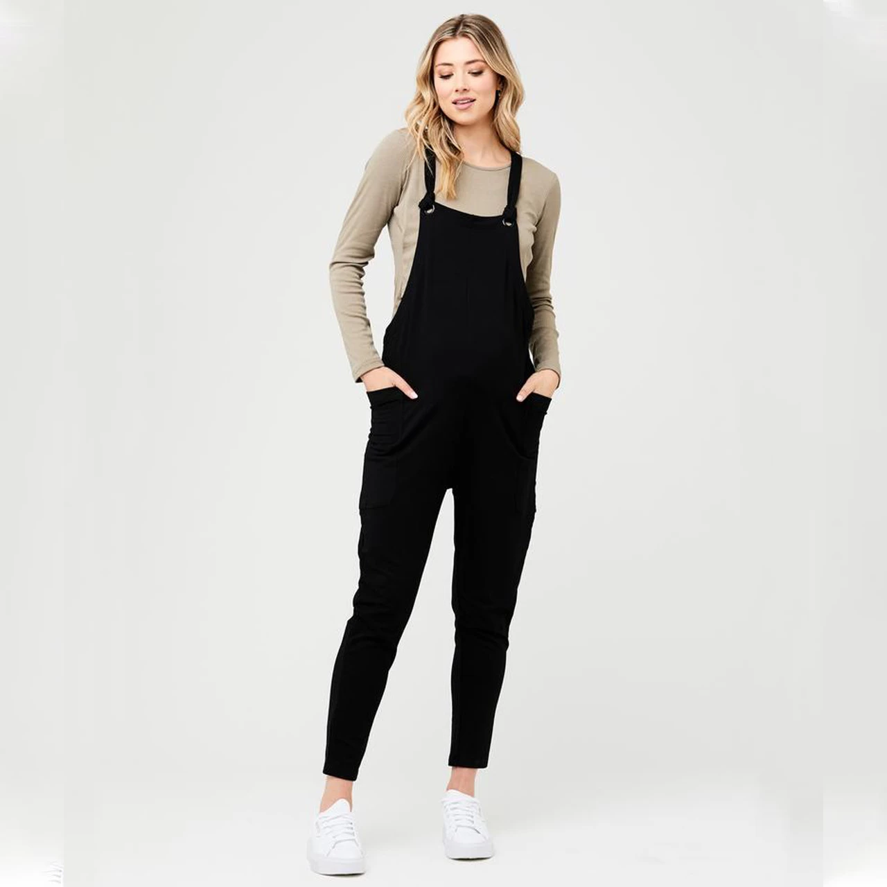 For an effortlessly cool and comfy outfit, you can’t look past the Ripe Maternity Perrie Playsuit. The stretch twill overall is designed to fit through all stages of pregnancy and layers perfectly over a fitted tee. Features a tapered leg shape, pockets and large metal eyelet trims.