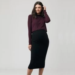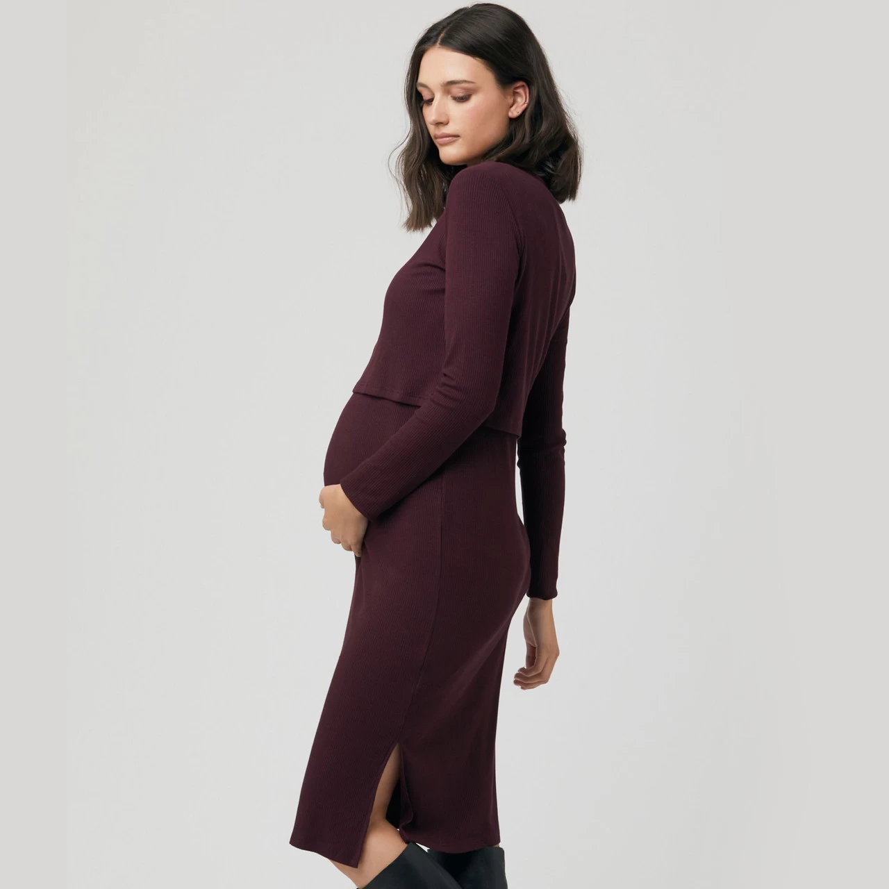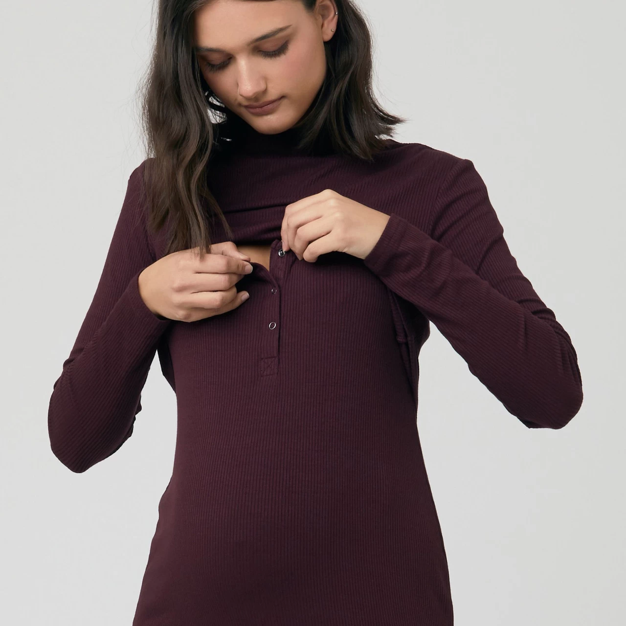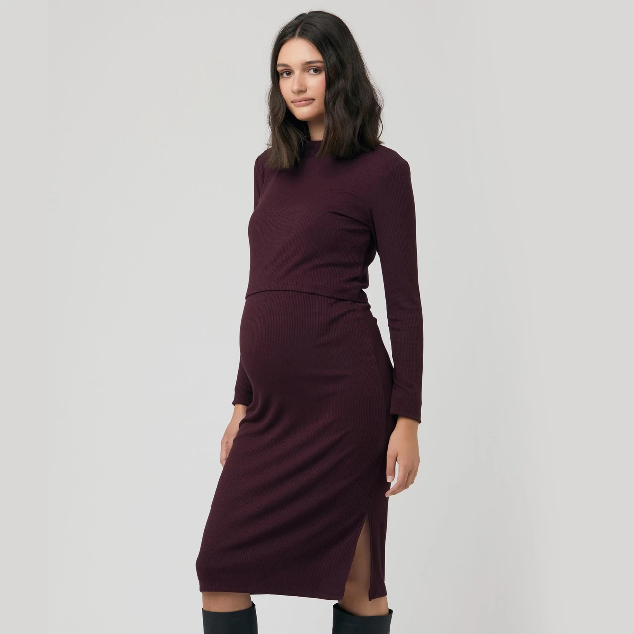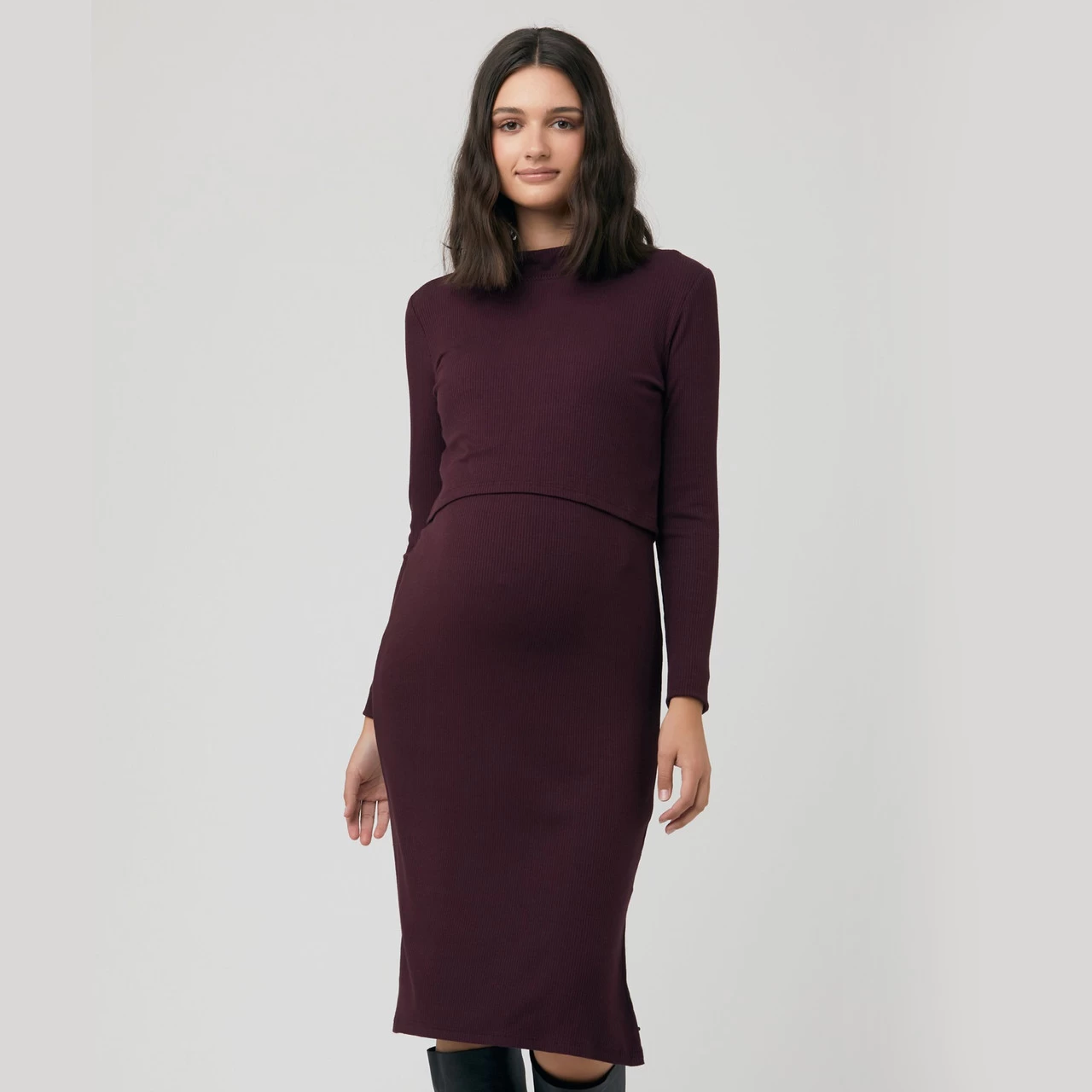 Cut from a high stretch rib knit, this versatile Ripe Maternity Ruby Rib Nursing Dress is made up of two pieces. Designed to be worn together or separately with other items from your wardrobe. The tank dress has side seam split and a front placket for nursing ease. The top is long sleeve, cropped length with high neck band. Easy to wear at any stage; during and after pregnancy.