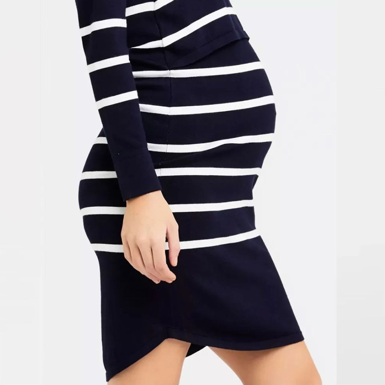 Extend the life of your pregnancy wardrobe and invest in pieces you can wear now and later. This Ripe Maternity Valerie Nursing Tunic in Navy/White features a simple, discreet up/down panel that will come in handy for nursing when your little arrives. The ultimate breastfeeding dress, for everyday or work, that will see you though your pregnancy and into motherhood.