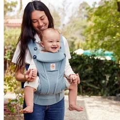 The Slate Blue Ergobaby OMNI BREEZE Baby Carrier brings breathability to the next level. Designed with Lightweight SoftFlexâ„¢ Mesh to create maximum airflow, it keeps both baby and you cool and dry all day. Unique diamond shaped mesh where outer ridge opens air pocket and inner micro-mesh allows easy air flow. Padded shoulder straps and lumbar support combine to avoid sore backs, shoulders and arms. This baby carrier provides all the carrying options you need as your baby grows, from newborn to toddler (0-48 months), making it the only all-in-one carrier you’ll ever need. You can carry your little one inward facing, outward facing, hip carry and back carry – whatever your preference is.