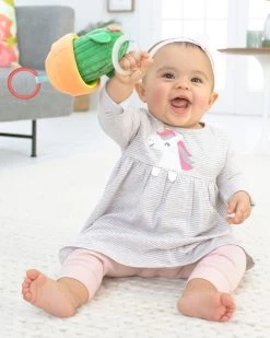 Nothing prickly about this cute cactus! I’m in loved with this Skip Hop Farmstand Jitter Cactus Stroller Toy. Soft and plush to the touch, this adorable potted plant toy vibrates and shakes when the ring is pulled. Attach it to your stroller and entertain baby on-the-go. It’s also great for play-at-home fun! With baby safe embriodery, this toy is designed from newborn onwards.
