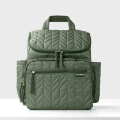 Skip Hop’s favourite Forma Diaper Backpack has a new colour -Dark Sage green! Perfect for hands-free parenting, this lightweight, quilted nappy bag comes complete with special packing cubes for baby’s gear. The spacious interior and all its interior pockets fits everything from snacks to spare outfits and the extra wide opening makes it quick to find essentials in an emergency. This baby bag won’t fill like you are carrying the whole house with you when you venture out with bubba.