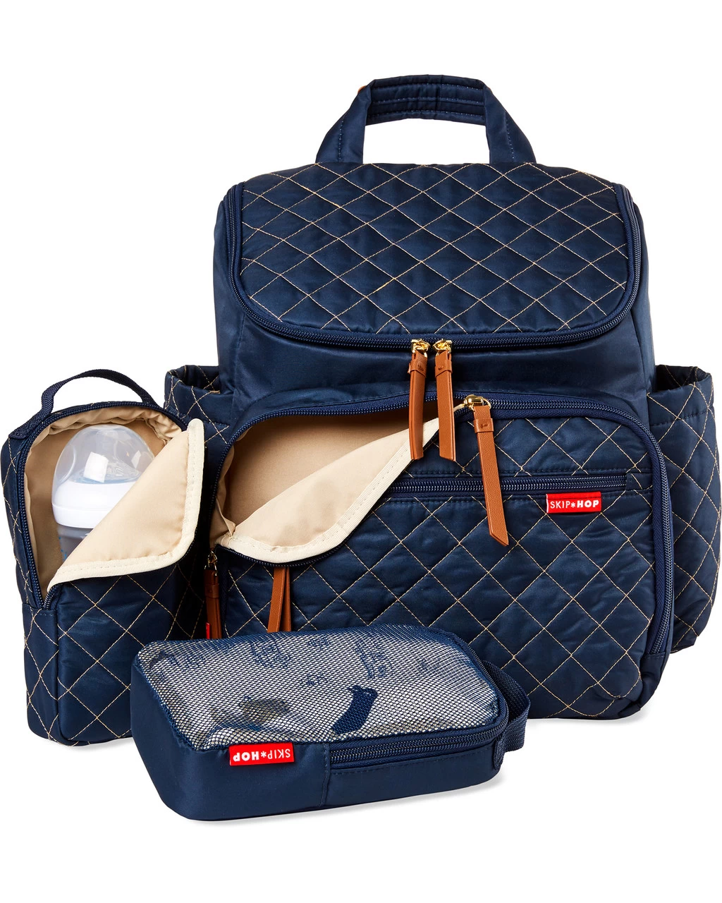 Skip Hop’s favourite Forma Diaper Backpack has a new colour combo -Navy! Perfect for hands-free parenting, this lightweight, quilted backpack comes complete with special packing cubes for baby’s gear. The spacious interior fits everything from snacks to spare outfits and the extra wide opening makes it quick to find essentials in an emergency.