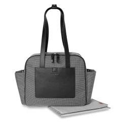 Taking cues from runway-worthy checkerboard and grid patterns, Skip Hop’s Madison Square Diaper Tote features a boxy silhouette for a modern take on a multitasking mum essential. This spacious diaper bag tote is accented with a vegan leather pocket that punctuates the bag’s clean lines. A large main compartment opens wide for easy access and zips closed securely. Baby essentials pack perfectly in the back zip pocket so they’re ready to go. Over-the-shoulder handles offer hands-free ease (so mum can carry her little one, too). Crafted in fashion forward, sporty textured fabric, it’s a look that shifts from work to weekend in effortless style.