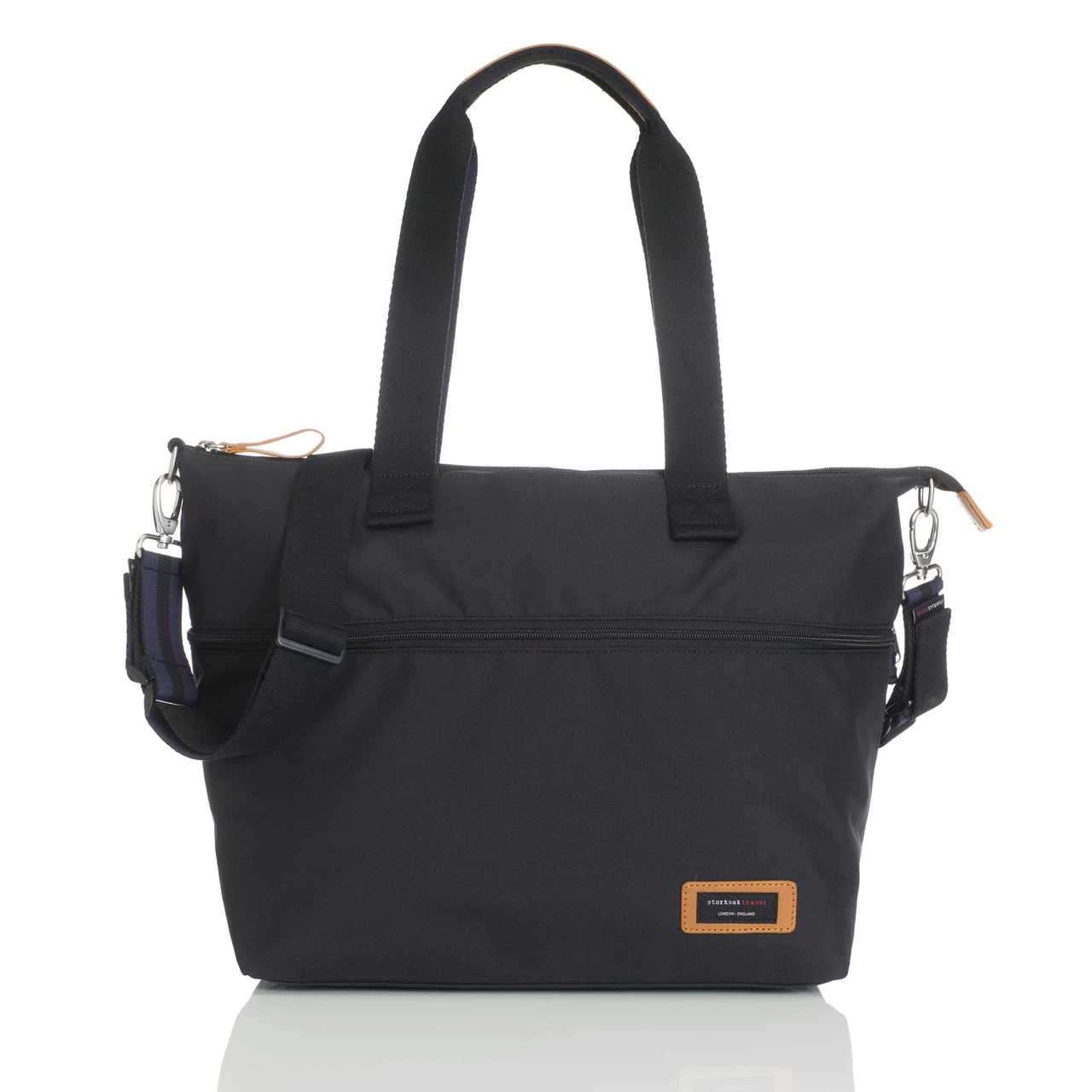 This tote bag straight from the Storksak Travel collection can boast of being the most functional and adaptable bag a mommy can ever have. The stylish looks allow you to carry it with ease while the expandability feature let you bring all the essentials you need for a day out with your baby. The lightweight, water-resistant fabric helps protect your items, while the multiple pockets and compartments will keep everything straightened out and ready to go. This bag even comes with a zipped insulated bottle holder and a padded changing mat for more convenience, with a handy back slot equipped to let you attach it to the Storksak Cabin Carry-On wheeled travel bag.Â