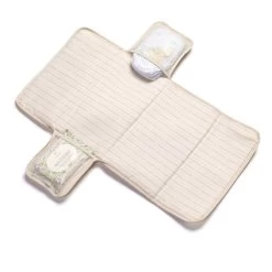 - Luxury folded laminated changing mat with two mesh wing pockets to store creams, nappies, and a back pocket for wipes.