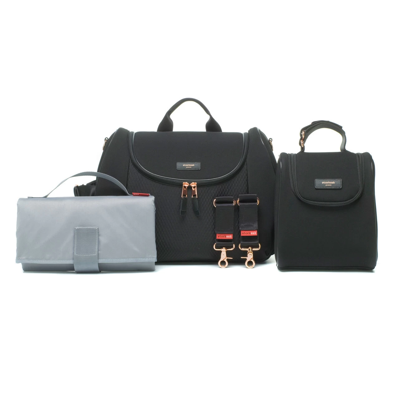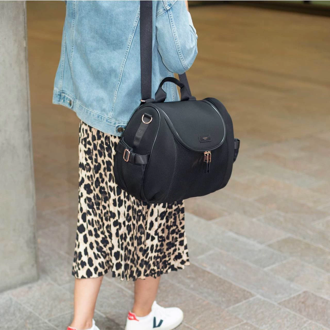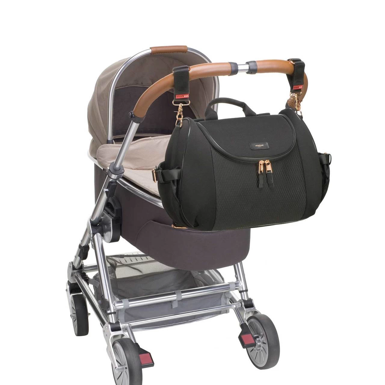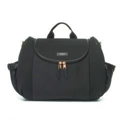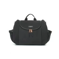Crafted from durable, water-resistant scuba, accented by smooth leather trims and statement hardware details adding an elegant touch to this practical design. Effortlessly convert this style from shoulder bag to backpack with the pull through nylon strap. Boasting supreme functionality with its wide opening into a roomy interior containing a multitude of pockets for easy access to your safely stored essentials and featuring a luxurious over-sized changing mat with pocket storage, insulated FAB bag and detachable stroller clips.