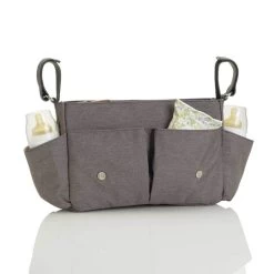 Have all your baby’s essentials at hand with this stylish Storksak Travel Stroller Organiser in grey. This practical unisex design contains four exterior pockets and zip closure for security. Designed for the modern parent who want convenient storage while out and about with bubs. Made from a sturdy neoprene material, this pram organiser doesn’t compromise style for function.