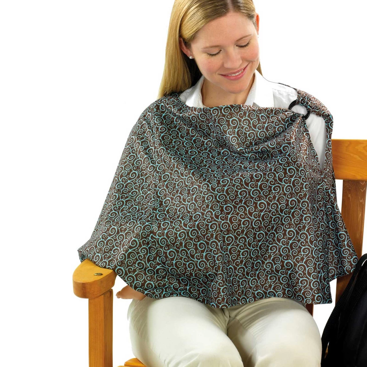 Grab some privacy with this classic patterned The First Years Nursing Privacy Wrap – Scroll Print. The nursing cover provides privacy comfort and style. Unlike traditional nursing blankets, the wide neck and peek a boo loop allows you to maintain eye contact with baby while shielding you and your baby in a discreet and comfy way. The additional loop at the bottom of this smart design prevents the fly away effect of the wind or baby’s kicking foot. Its adjustable coverage maintains privacy even if baby kicks. This is made up of soft, light breathable fabric.