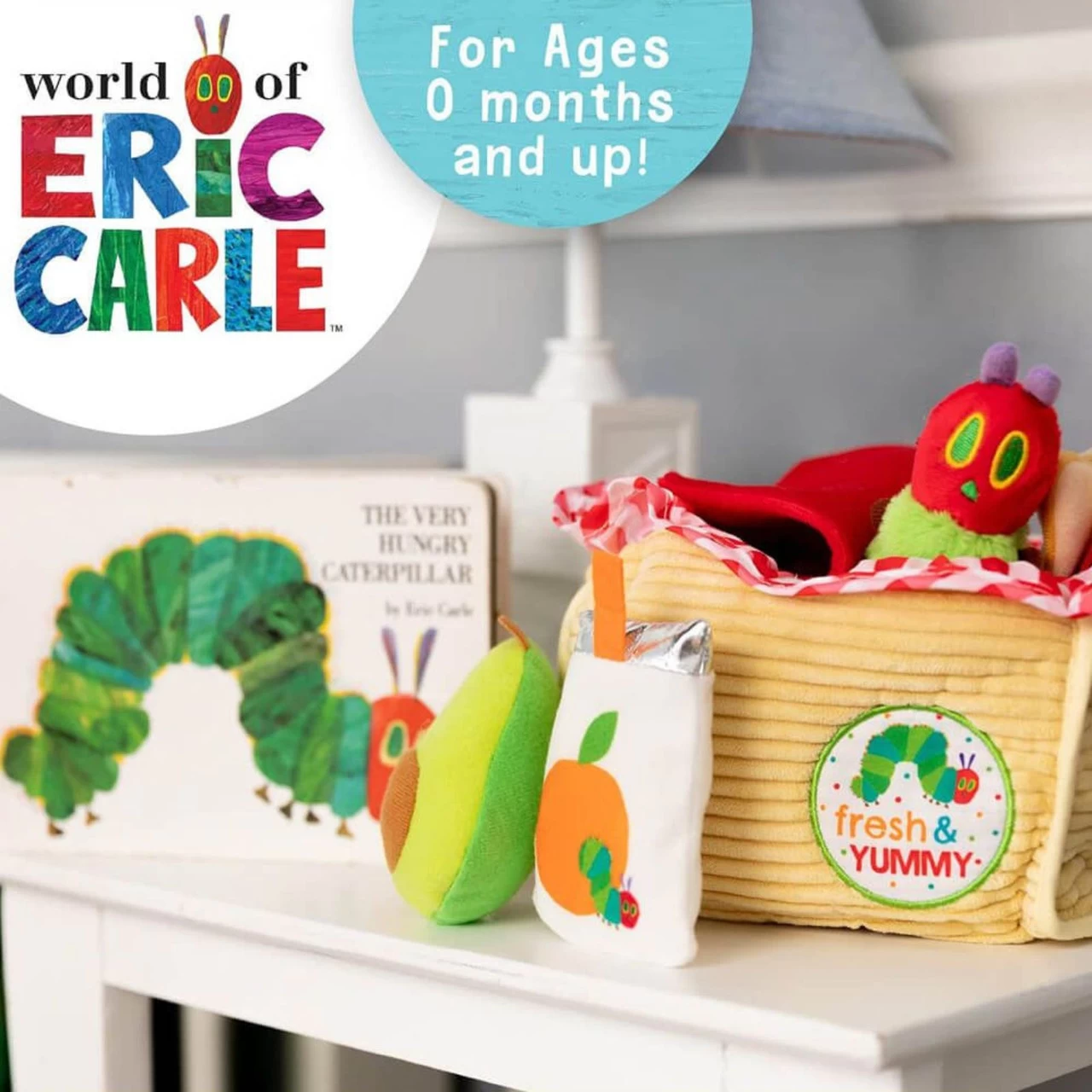 This adorable 7 piece The Very Hungry Caterpillar Picnic Basket playset is sure to delight little ones. With a variety of healthy snacks for your pretend picnic, this activity toy set includes an 11cm plush caterpillar, plush sandwich, felt lettuce, swiss cheese & tomato, avocado with rattle sounds and a crinkle juice pouch. Babies will love to explore & learn with this reading companion, making this the perfect unisex newborn baby shower gift….even a great vibrant prop for a Very Hungry Caterpillar themed birthday party!